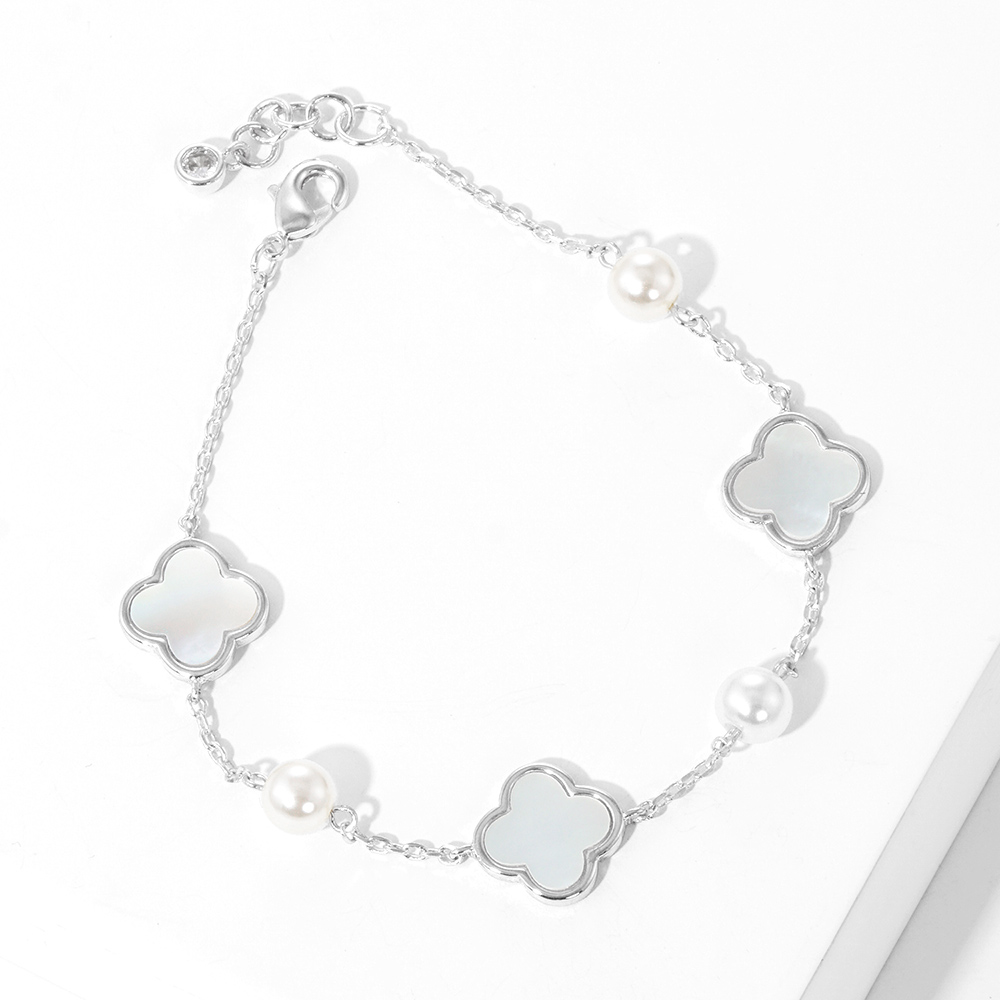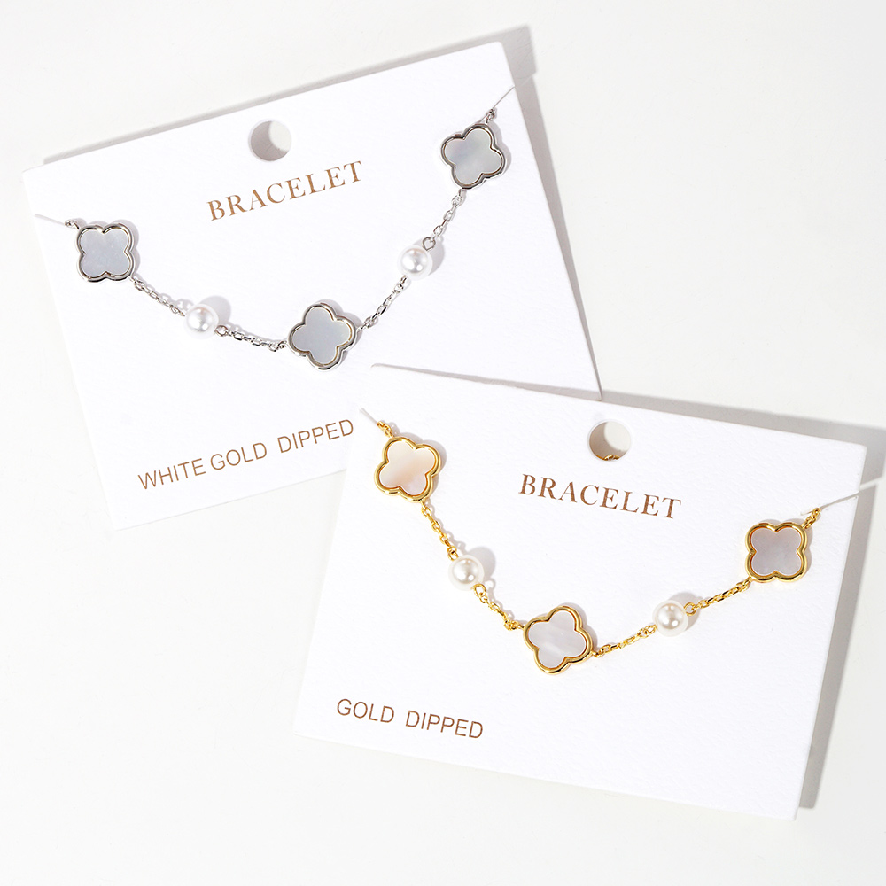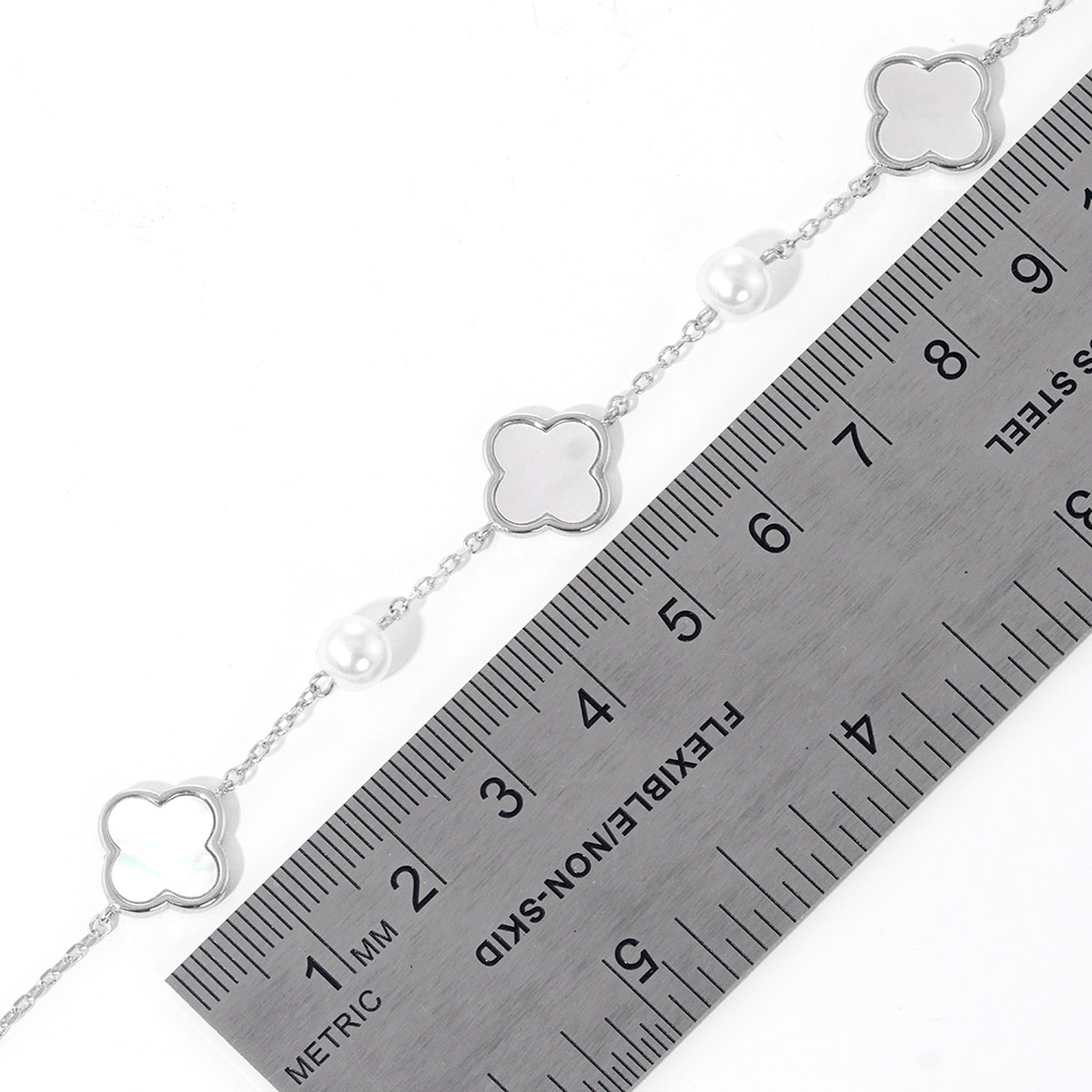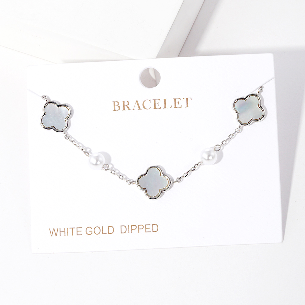 White Gold Dipped Mother of Pearl Quatrefoil Station Bracelet
