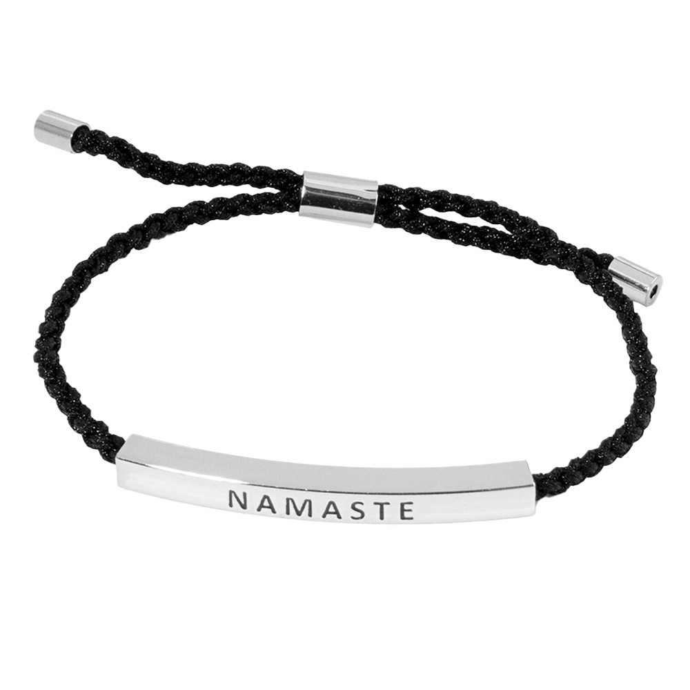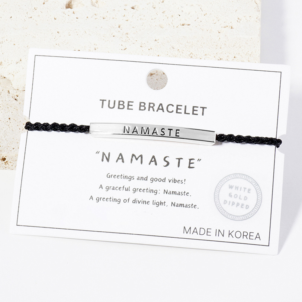 Gold Dipped NAMASTE Message Bar Pointed Rope Adjustable Cinch Pull Tie Bracelet