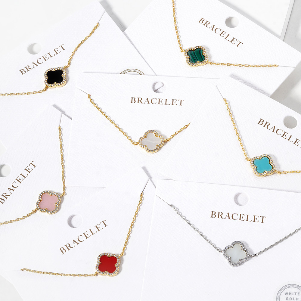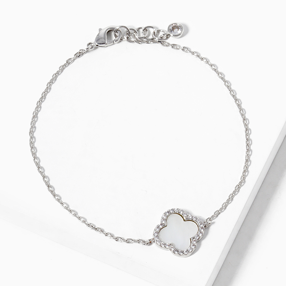 White Gold Dipped Quatrefoil Pointed Bracelet