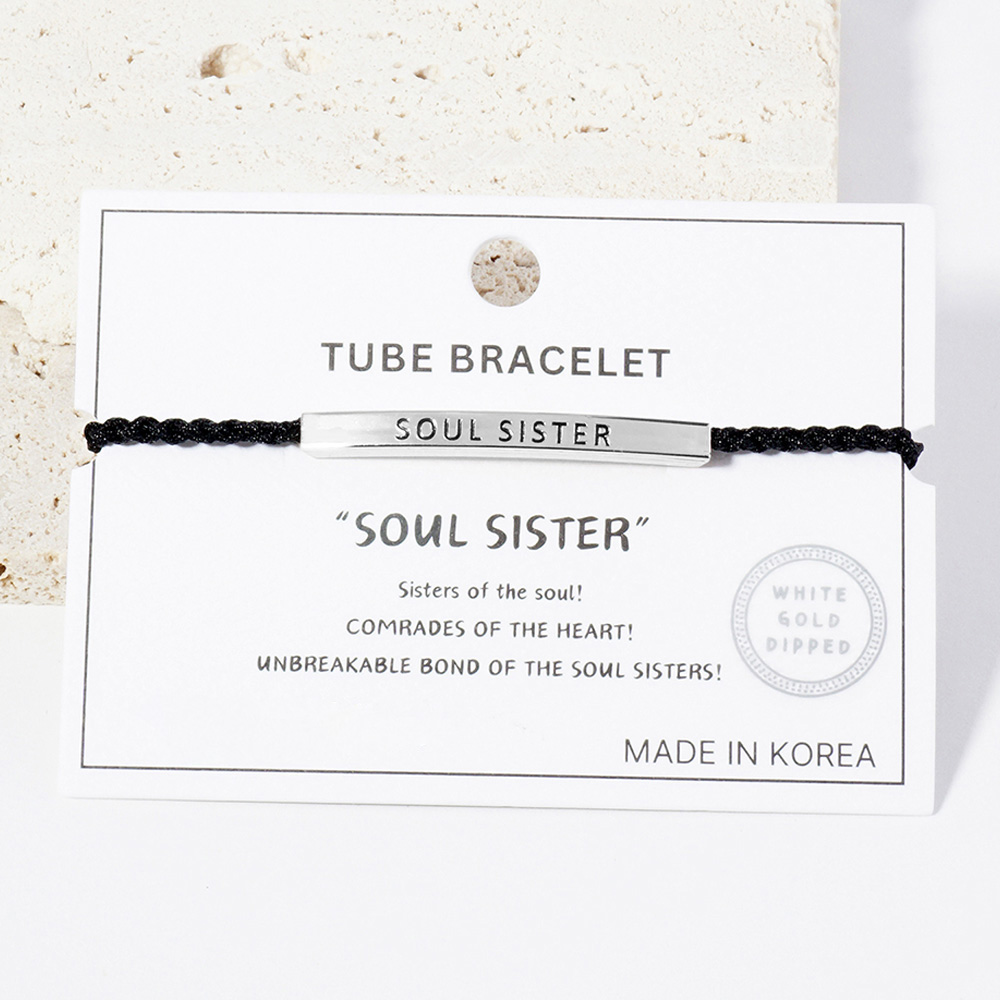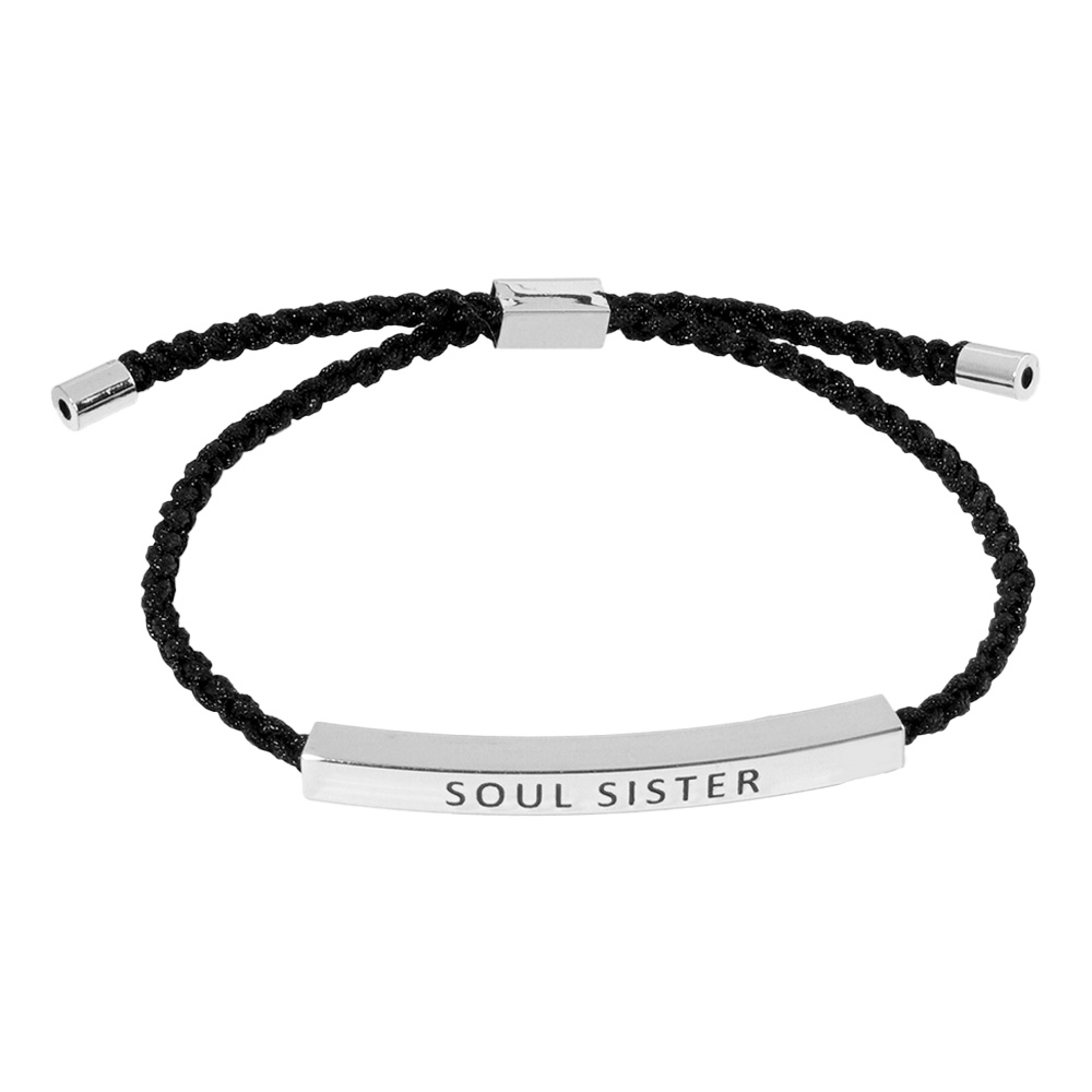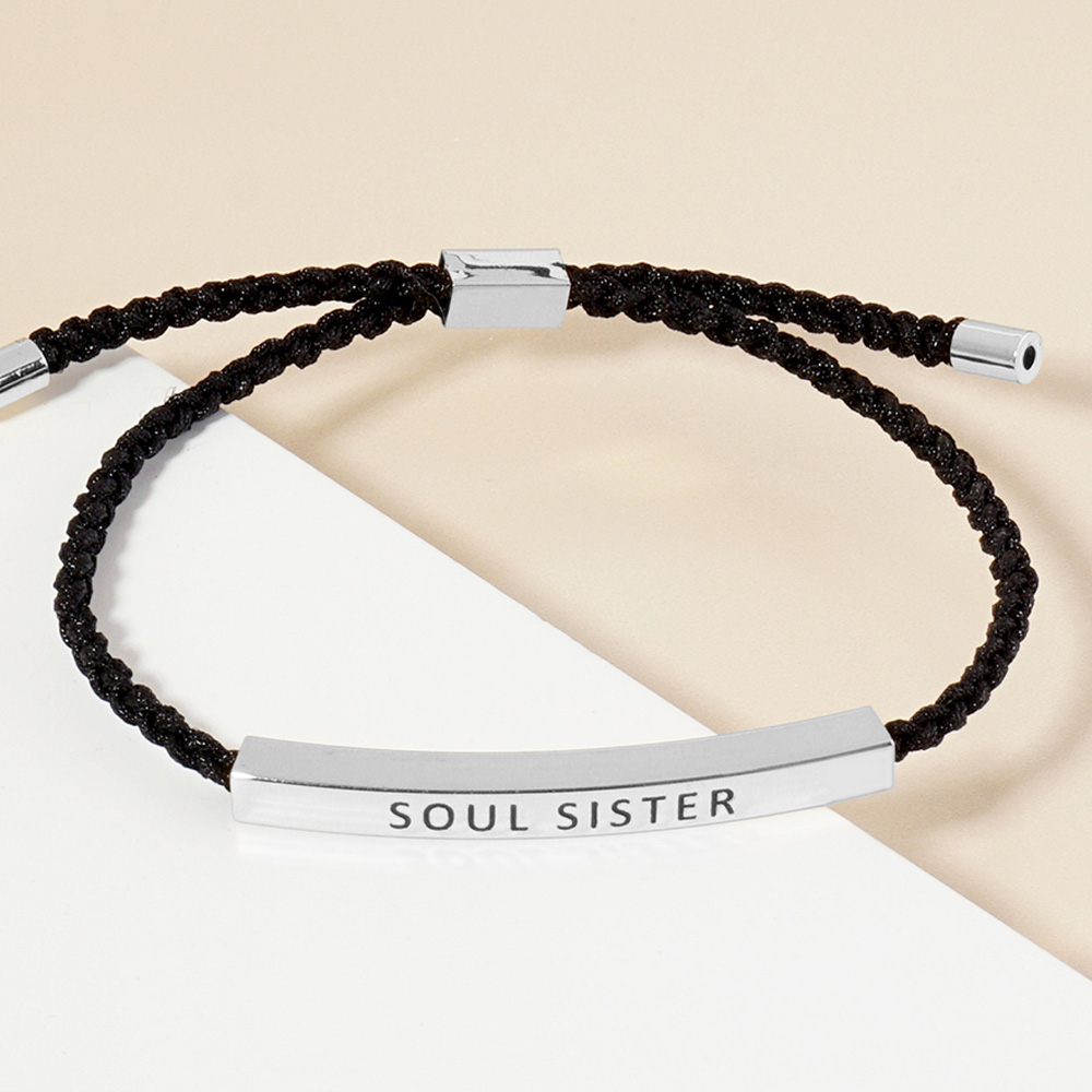Gold Dipped SOUL SISTER Message Bar Pointed Rope Adjustable Cinch Pull Tie Bracelet