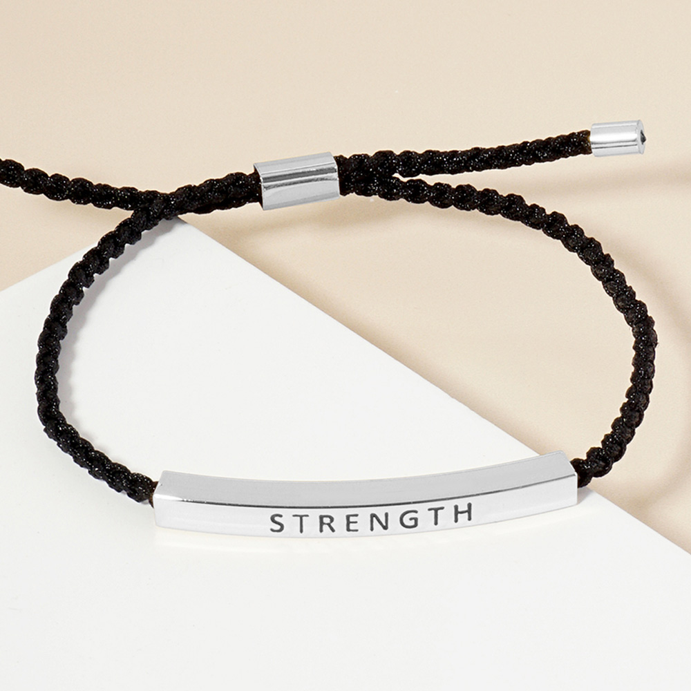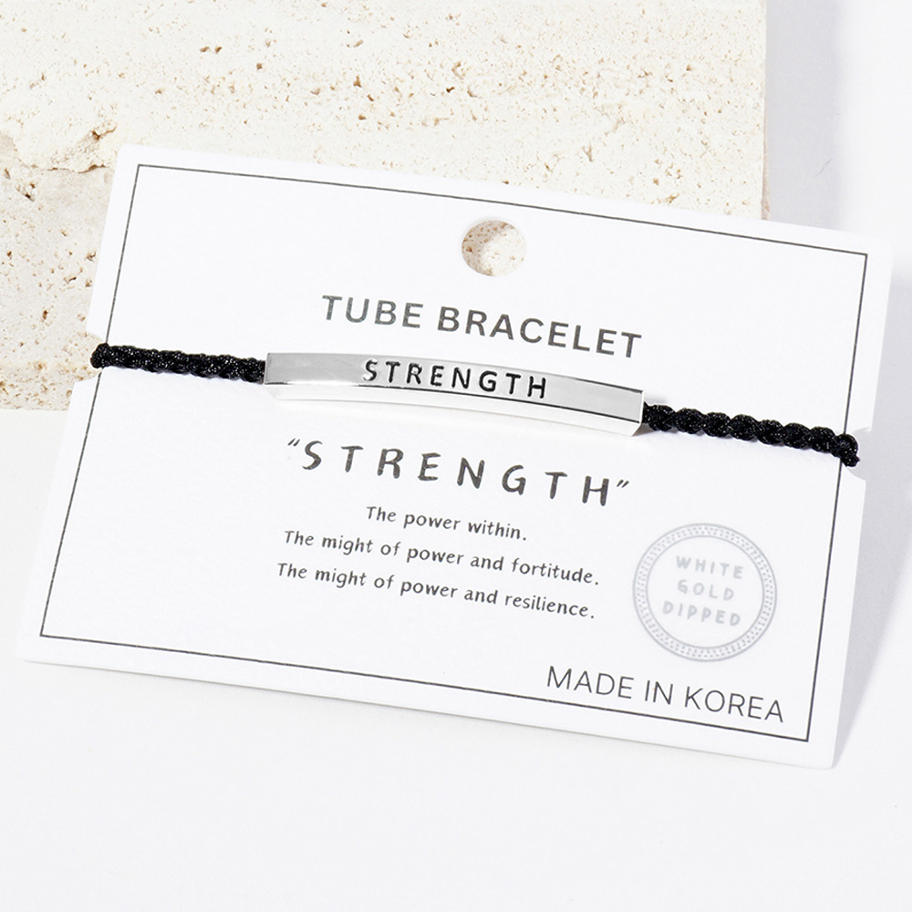 Gold Dipped STRENGTH Message Bar Pointed Rope Adjustable Cinch Pull Tie Bracelet