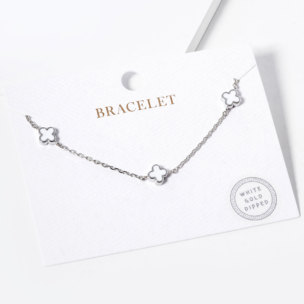 White Gold Dipped Quatrefoil Charm Link Bracelet