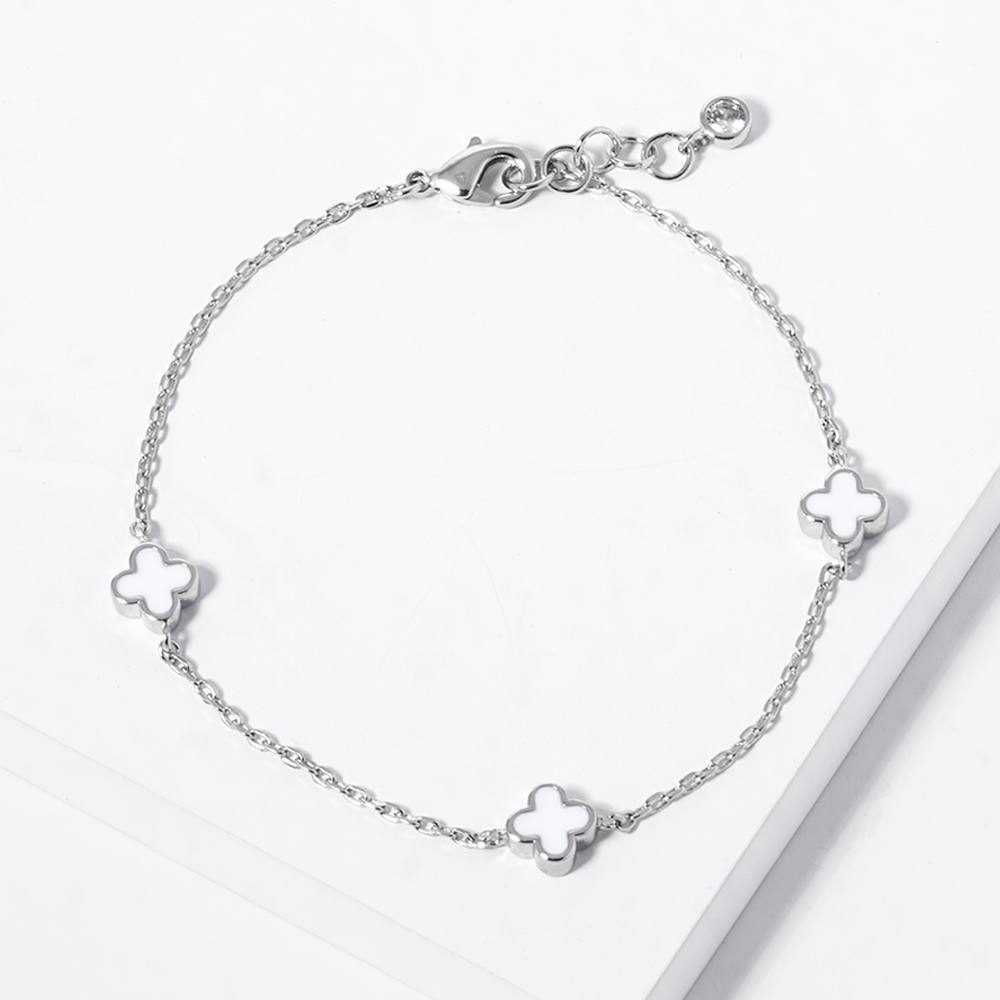 White Gold Dipped Triple Quatrefoil Link Bracelet