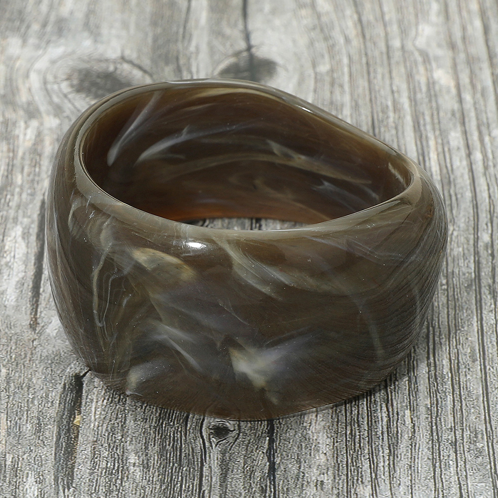 • Add bold style to your accessories with this wide resin bangle, featuring a striking marbled swirl design. Perfect for making a statement, this versatile piece complements both casual and dressy outfits with artistic flair and contemporary appeal.