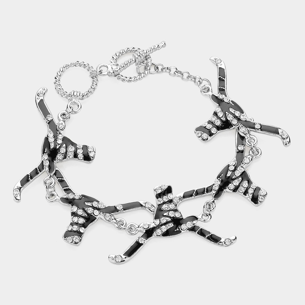 Zebra Patterned Stone Paved Bulls Link Bracelet