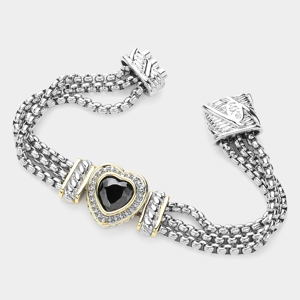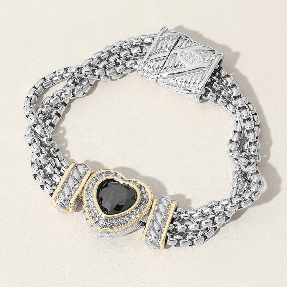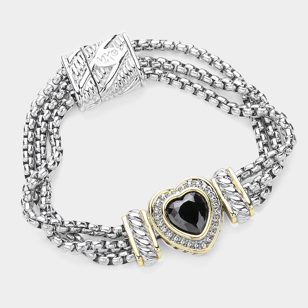 • Chic multi-strand bracelet with a heart-shaped centerpiece embellished with sparkling accents. Designed with a secure magnetic clasp, this elegant bracelet adds a stylish touch to everyday wear and special occasions.