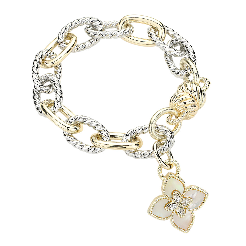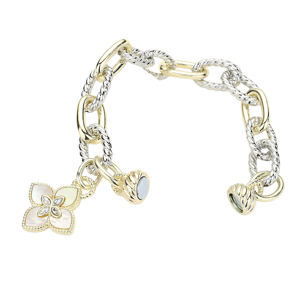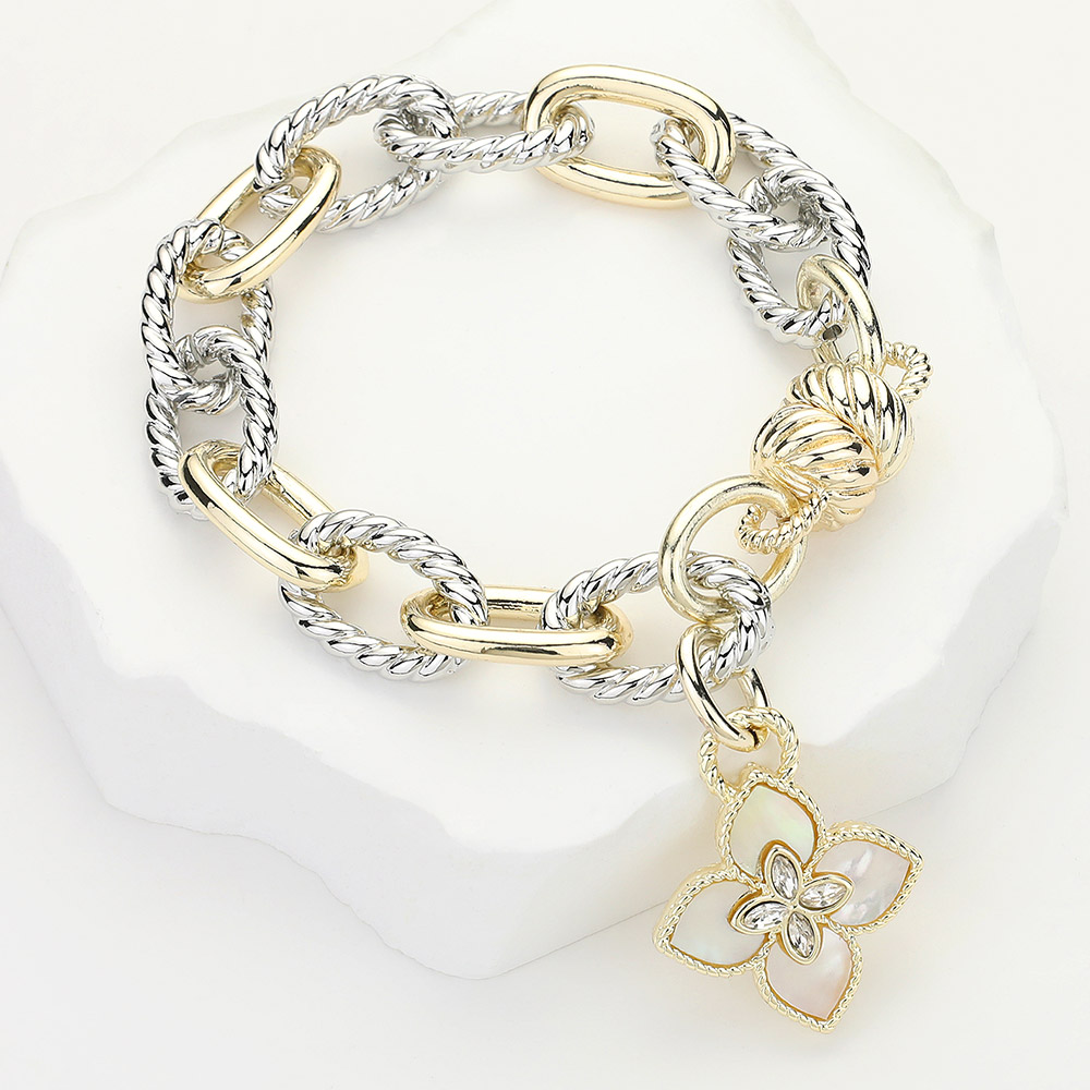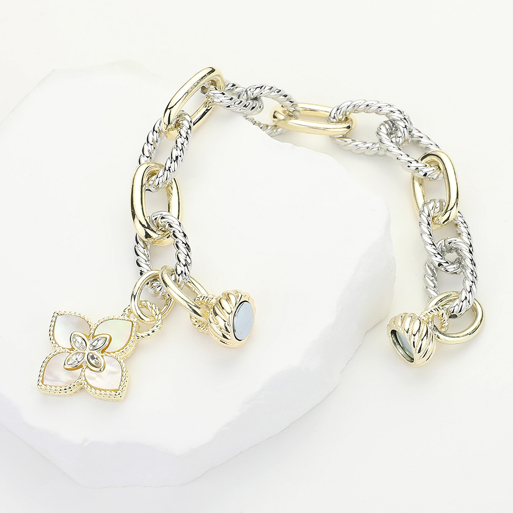 14K Gold Plated Mother of Pearl Clover Charm Chunky Chain Magnetic Bracelet