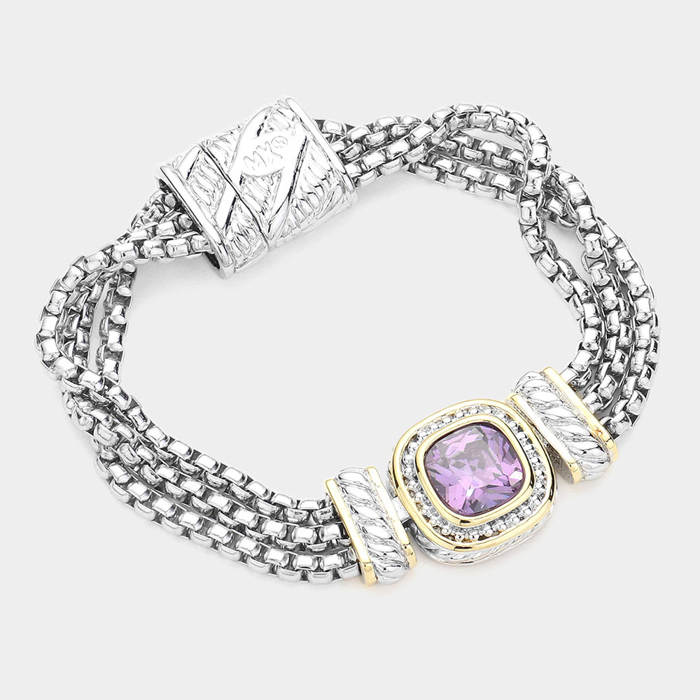 14K Gold Plated Square CZ Stone Magnetic Bracelet