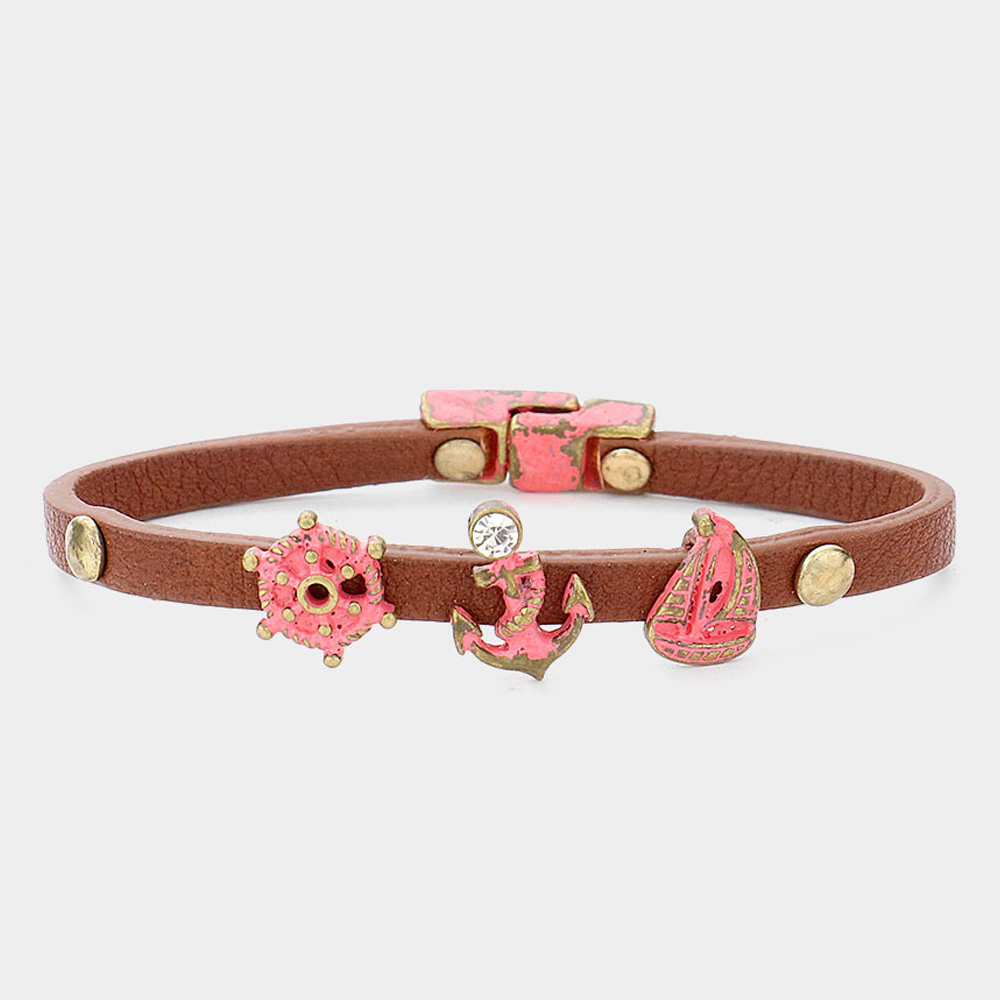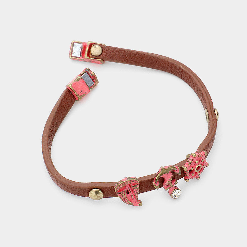 Metallic Faux Leather Rectangle Pave Rhinestone Bracelet