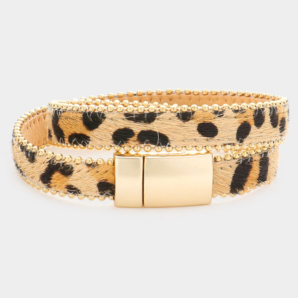 Animal Patterned Calf Magnetic Wrap Bracelet