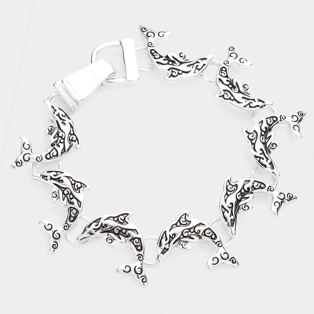 Glass Crystal Metal Flower Leaf Evening Bracelet