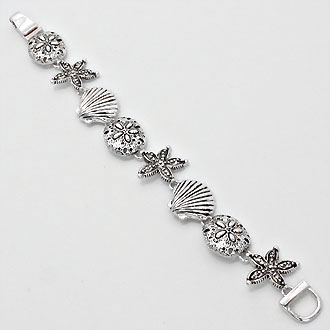 Antique Metal Starfish Sand Dollar Shell Link Magnetic Bracelet