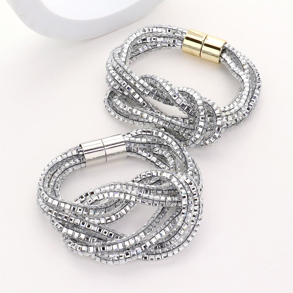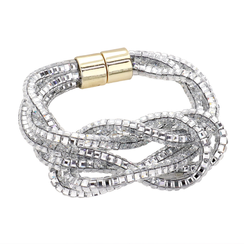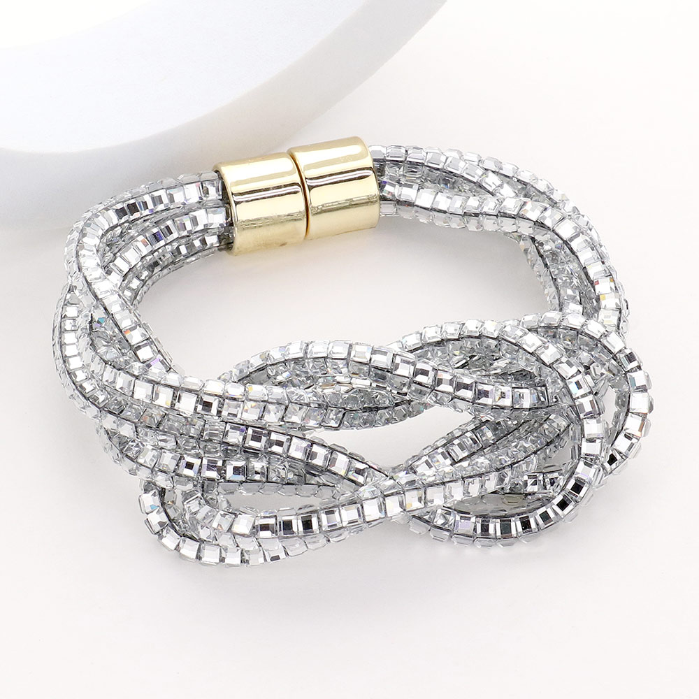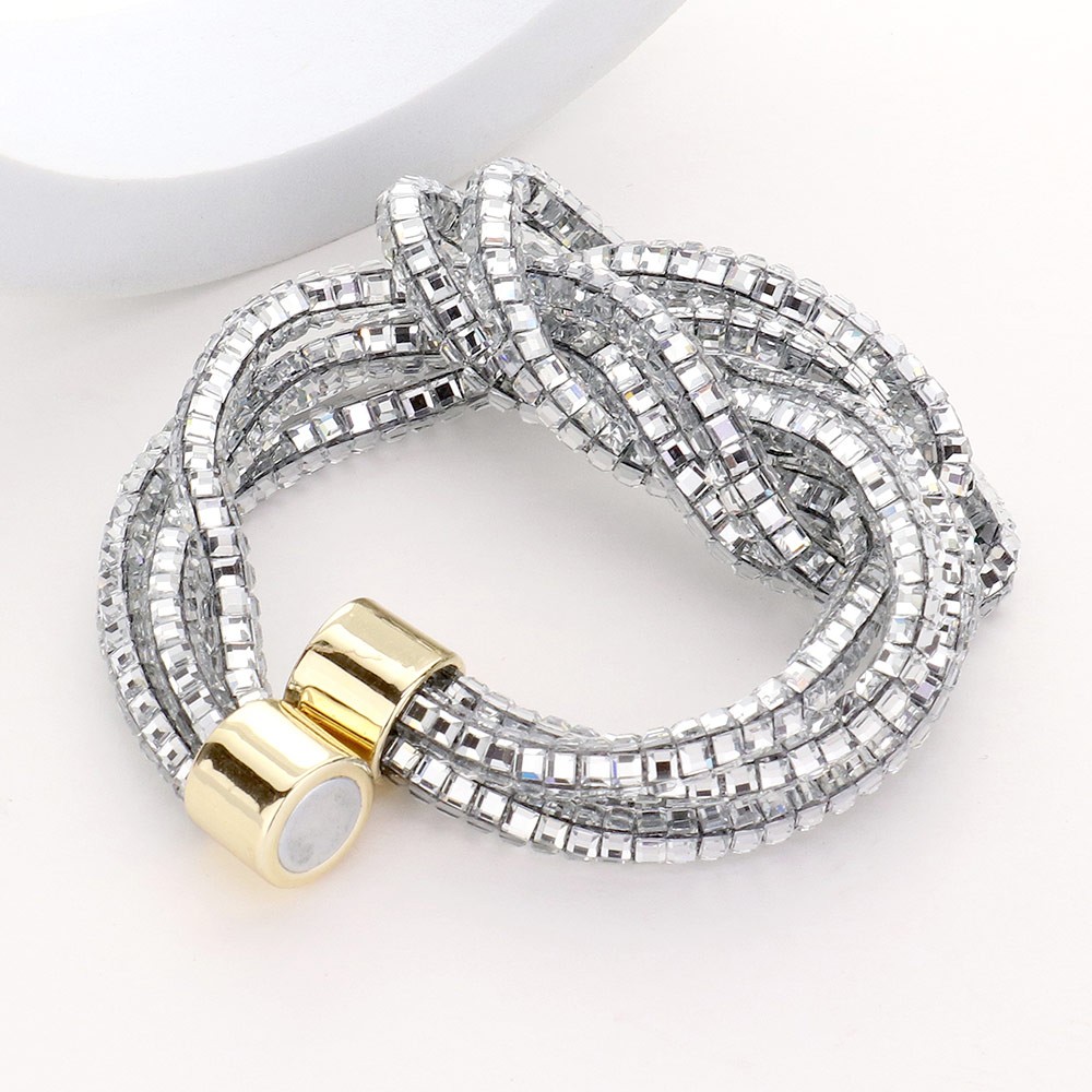 Rhinestone Paved Dome Beaded Stretch Bracelet