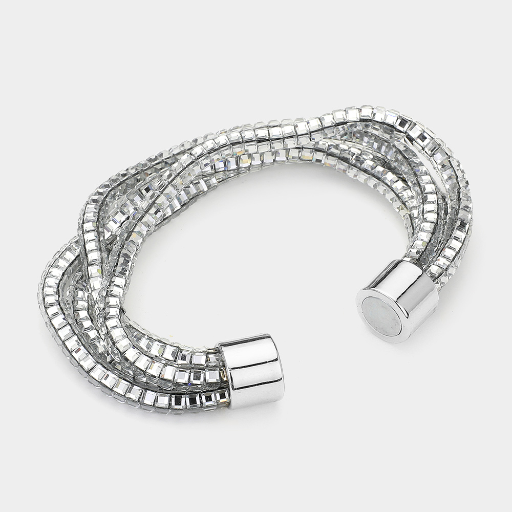 Crystal Rhinestone Pave Fringe Evening Earrings
