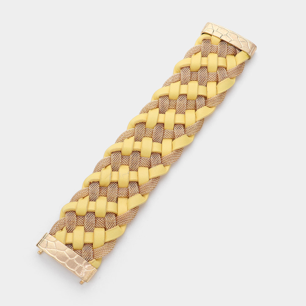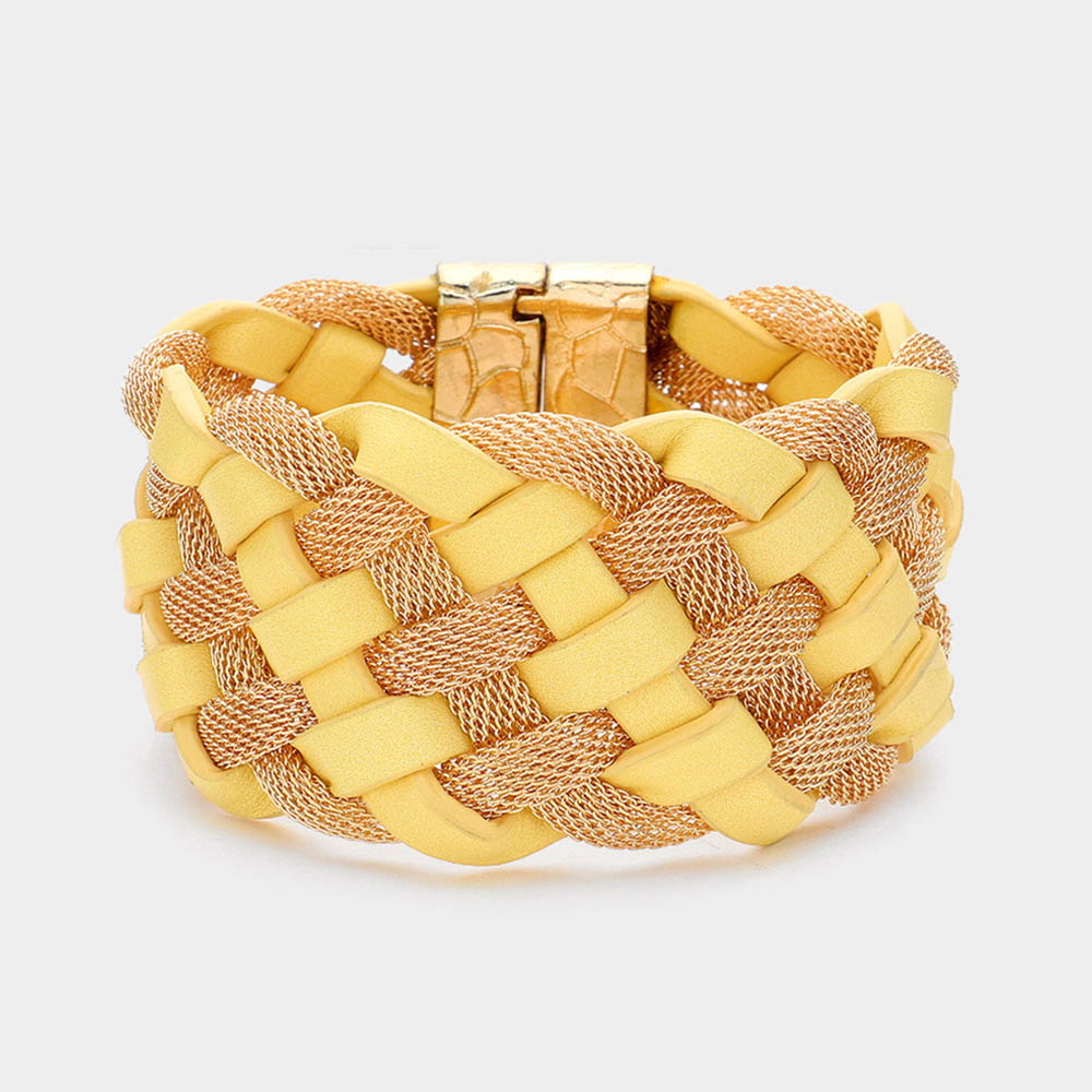 Braided Metal Mesh Faux Leather Magnetic Bracelet