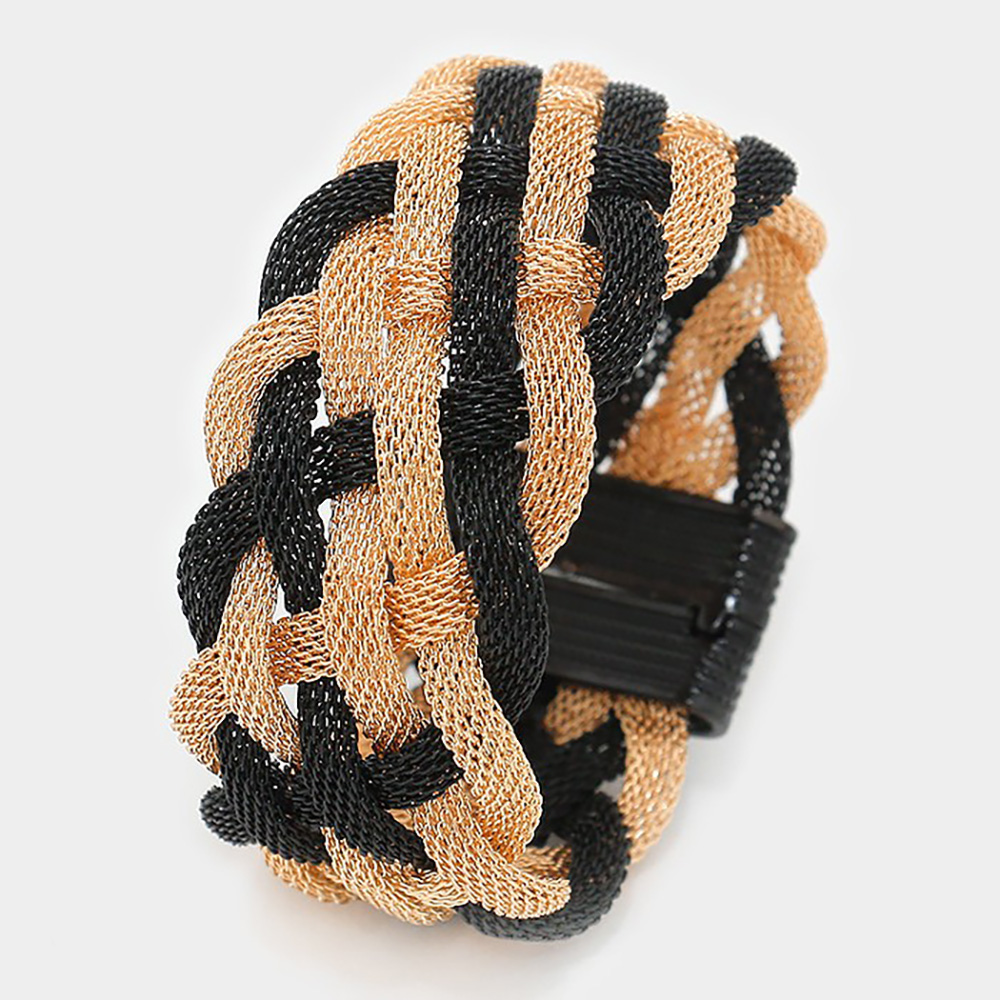 Stone Paved Pearl Embellished Evening Cuff Bracelet