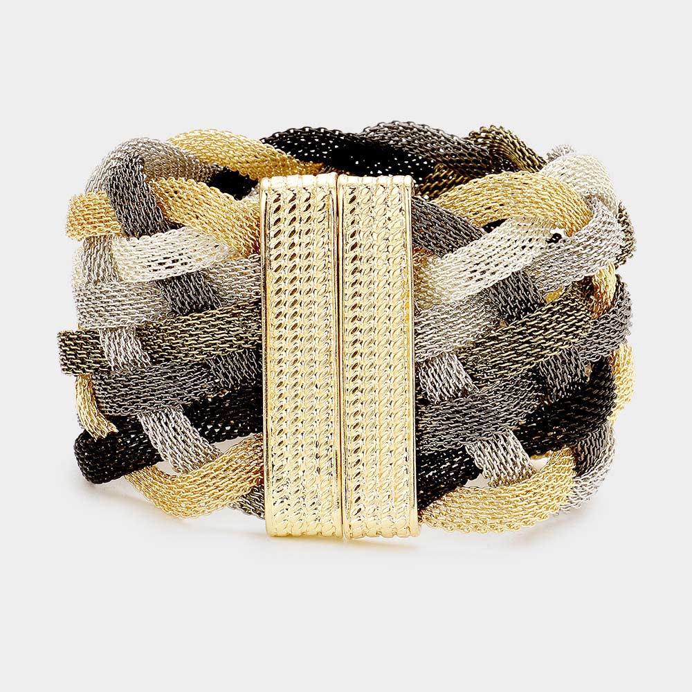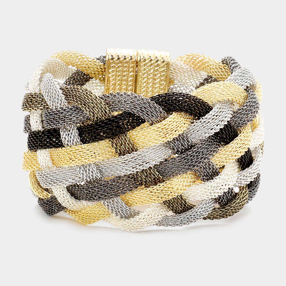 9PCS - Metal Owl Crescent Leaf Lock Charm Pointed Various Beads Beaded Stretch Multi Layered Bracelet