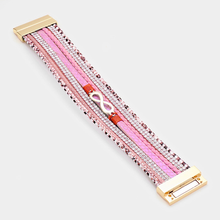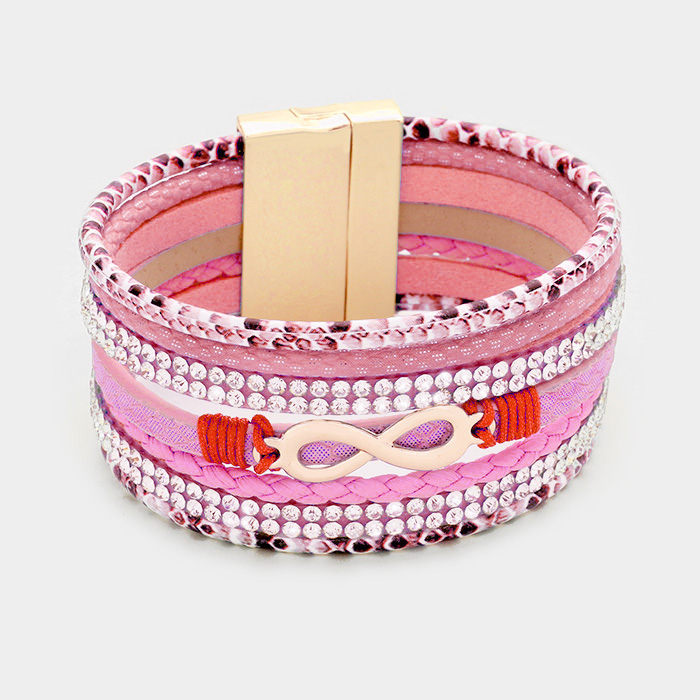 Crystal Pave Infinity Faux Leather wrap Bracelet