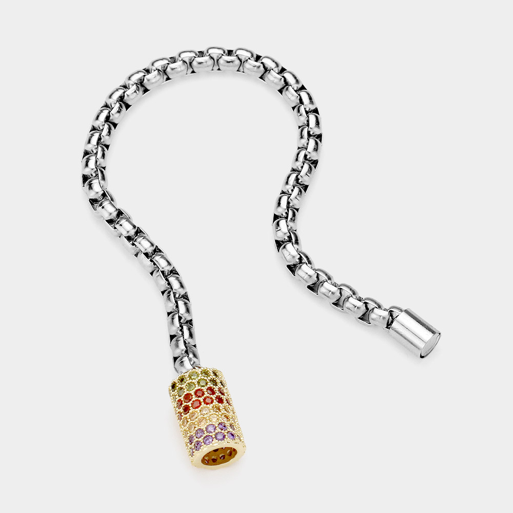 CZ Stone Paved Cylinder Pointed Magnetic Bracelet
