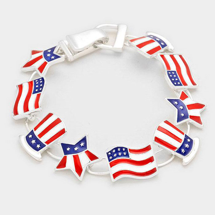 Glittered Enamel American USA Flag Top Hat Teddy Bear Stud Earrings