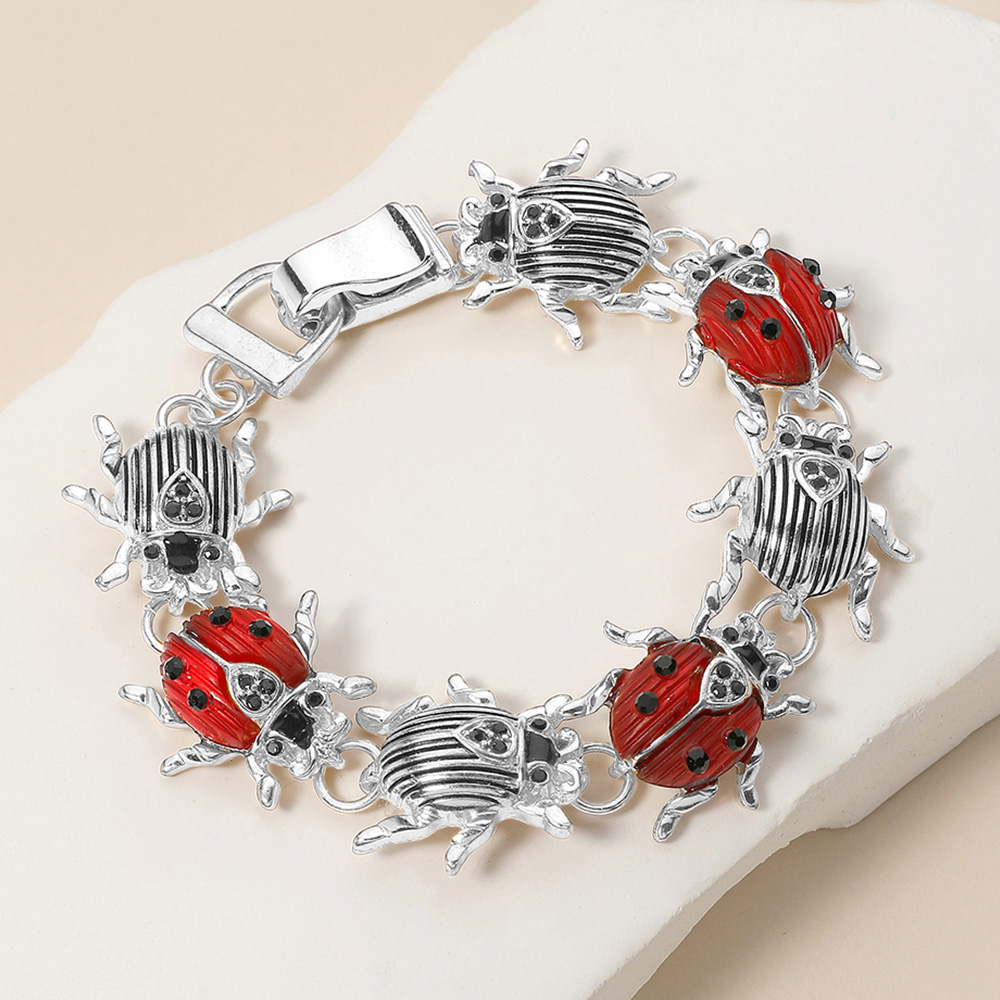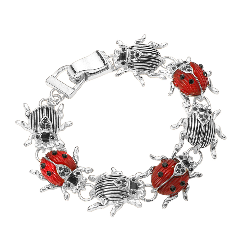Details • Size : 0.8" H, 7" + 0.5" L • Magnetic Closure • Adorable ladybug charm bracelet featuring alternating designs for a fun and unique look. Lightweight and easy to wear, this bracelet adds a cheerful touch to everyday outfits or special occasions. A charming accessory perfect for gifting or adding playful personality to your jewelry collection. • Lead and Nickel Compliant