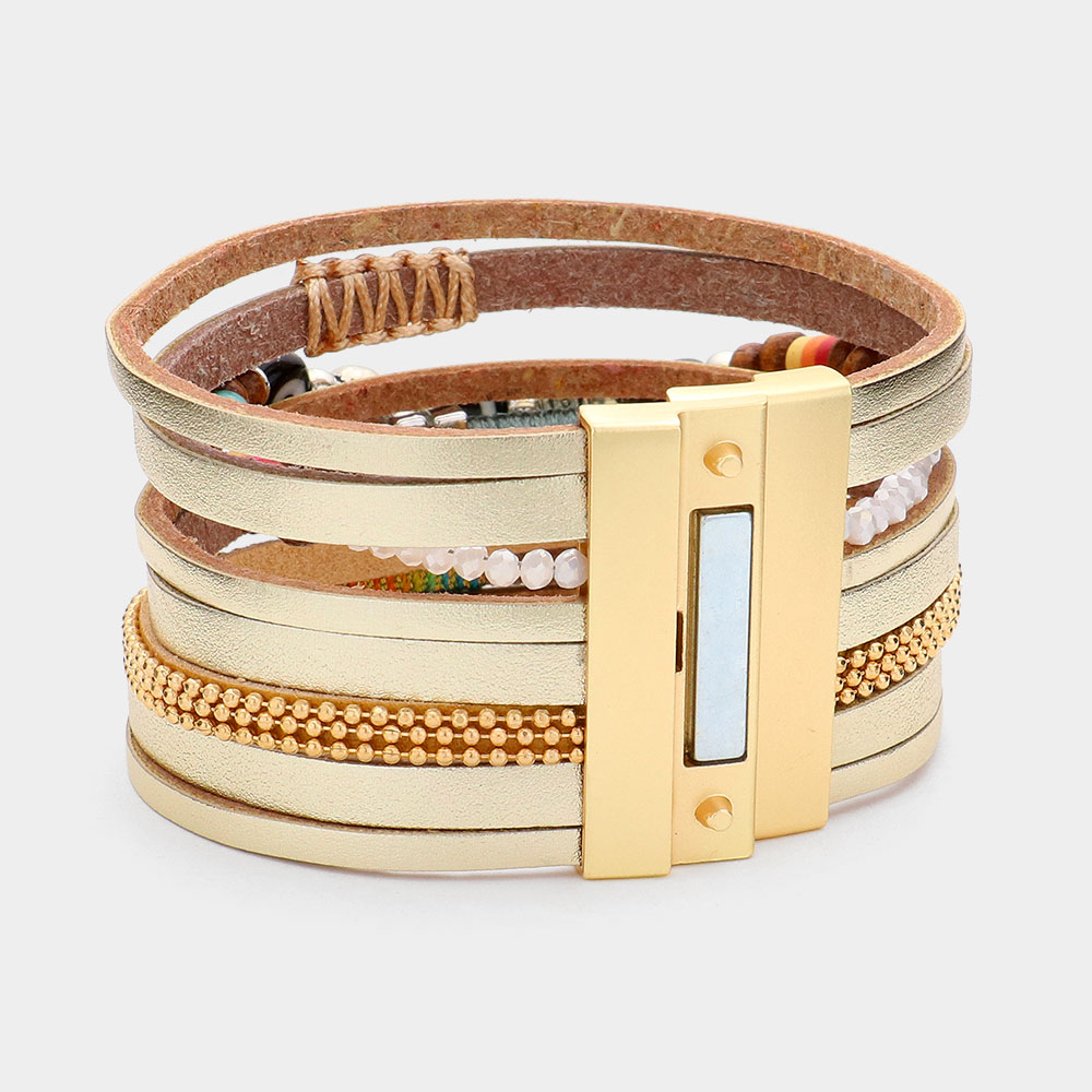 Evil Eye Pointed Faux Leather Magnetic Bracelet
