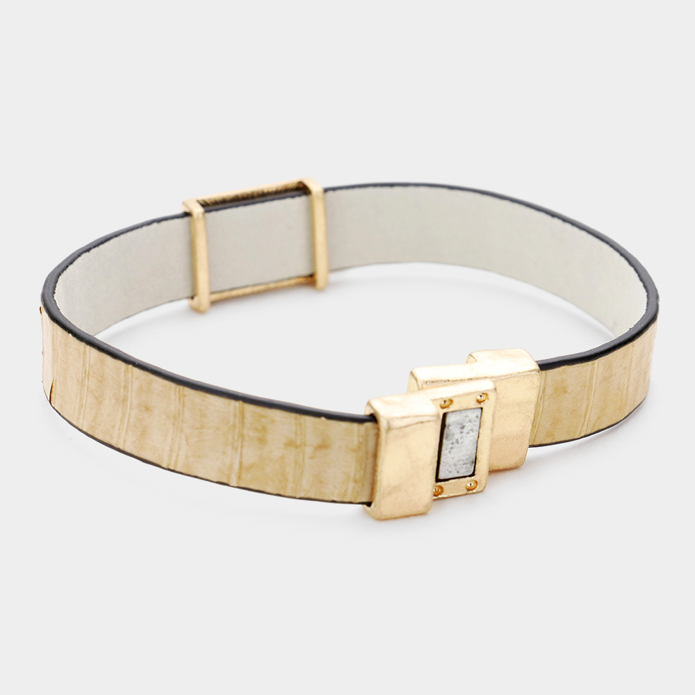 Genuine Leather Metal Lock Charm Magnetic Bracelet