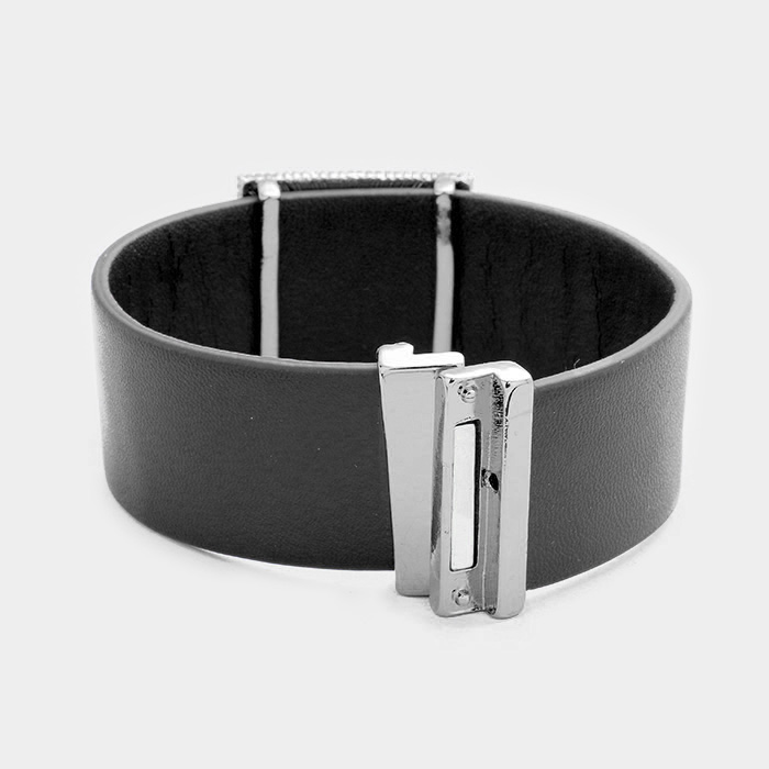 Geo Patterned Genuine Leather Magnetic Bracelet
