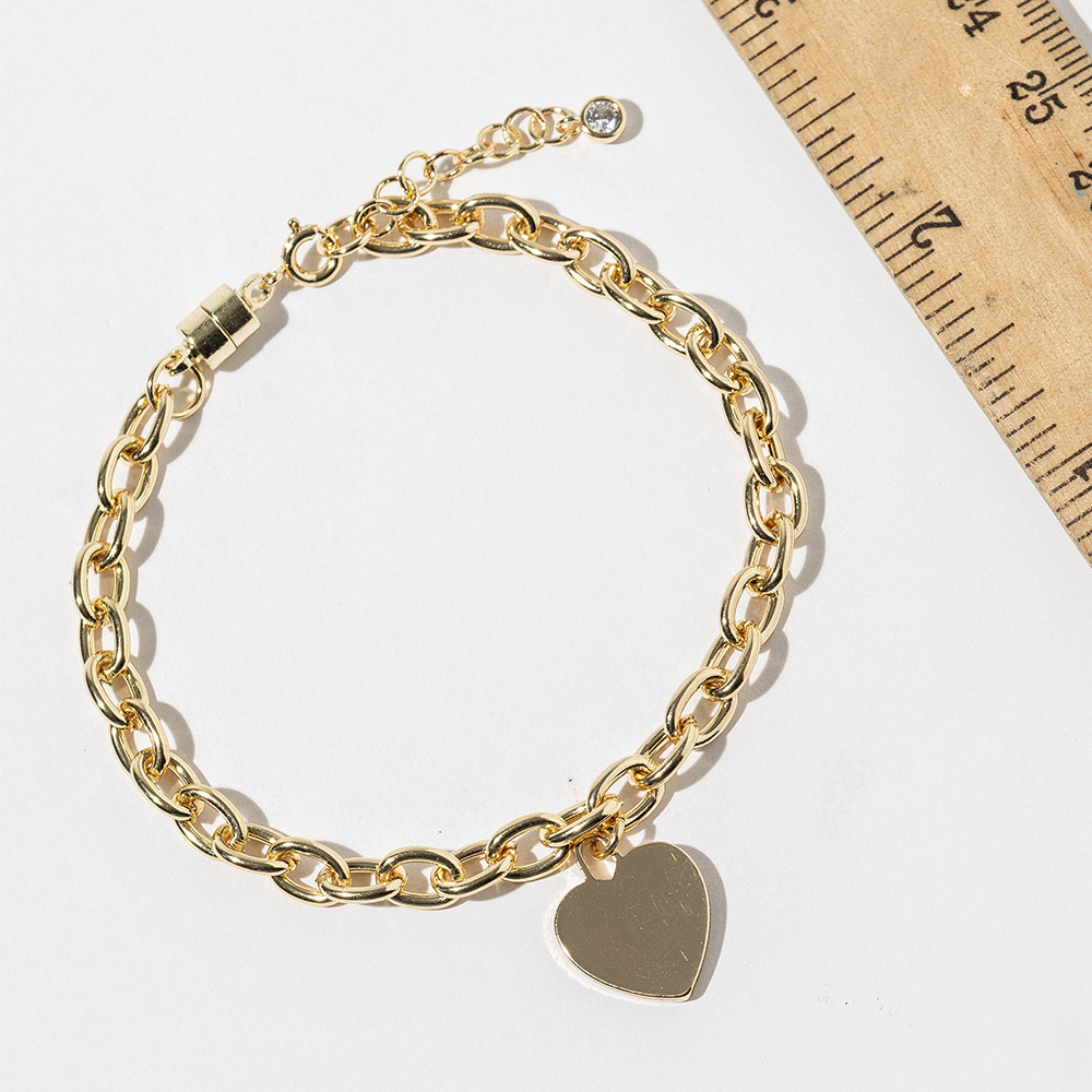 • Chic chain bracelet featuring a smooth heart charm and a secure magnetic clasp for effortless wear. Its timeless design complements everyday looks and adds a delicate hint of romance to any outfit, making it a perfect piece to stack, style, or gift for special occasions.