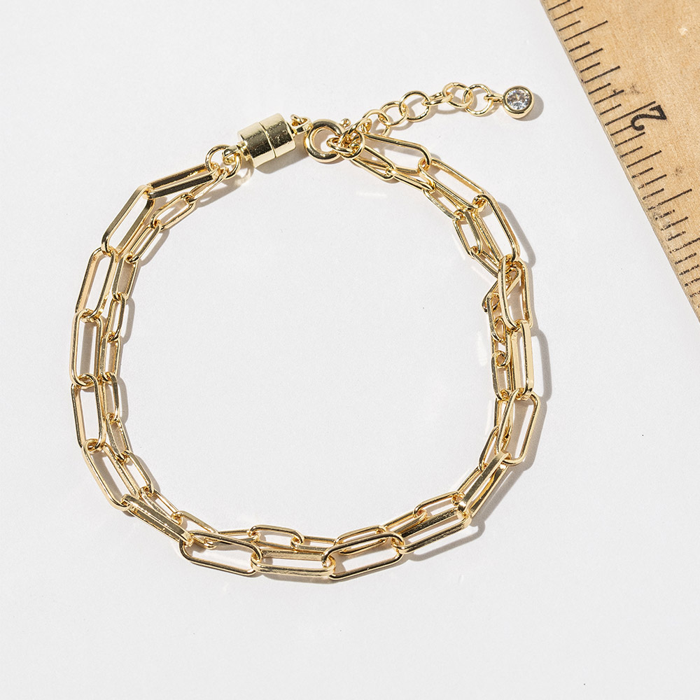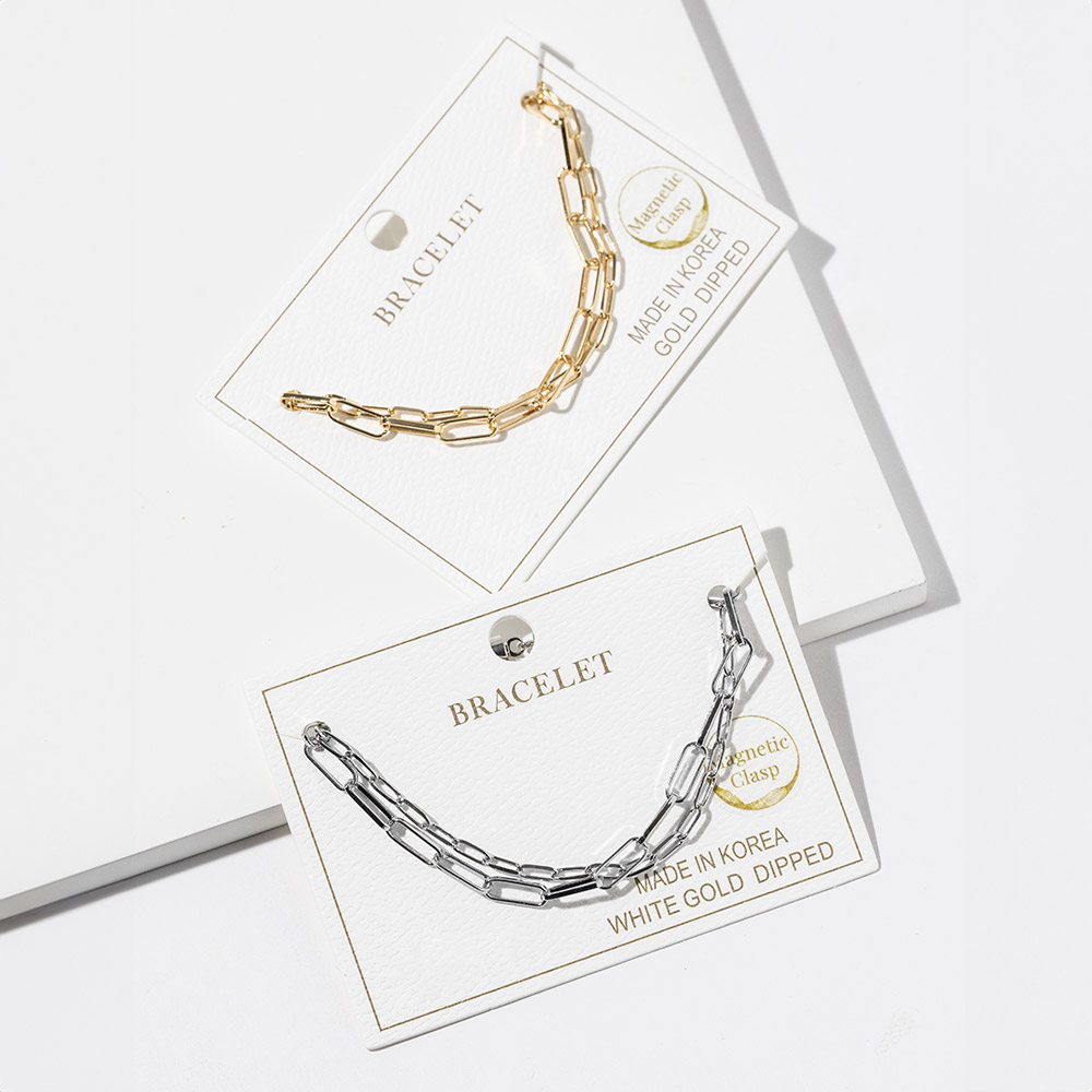 Details • Size : 0.3" H, 7" + 1" L • Magnetic Clasp Closure • Elevate your everyday look with this modern paperclip link bracelet featuring a secure magnetic clasp that makes it easy to put on and remove. Designed for effortless style, its sleek linked silhouette pairs perfectly with casual outfits or layered accessories for a chic and polished finish. • Gold Dipped • Lead and Nickel Compliant • Made In Korea