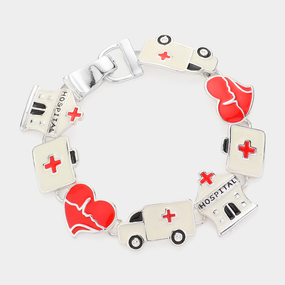Hospital Enamel American Red Cross Metal Magnetic Bracelet