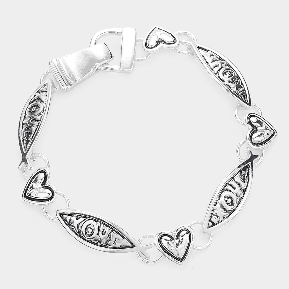 IXOYE message Ichthys Heart Link Magnetic Bracelet
