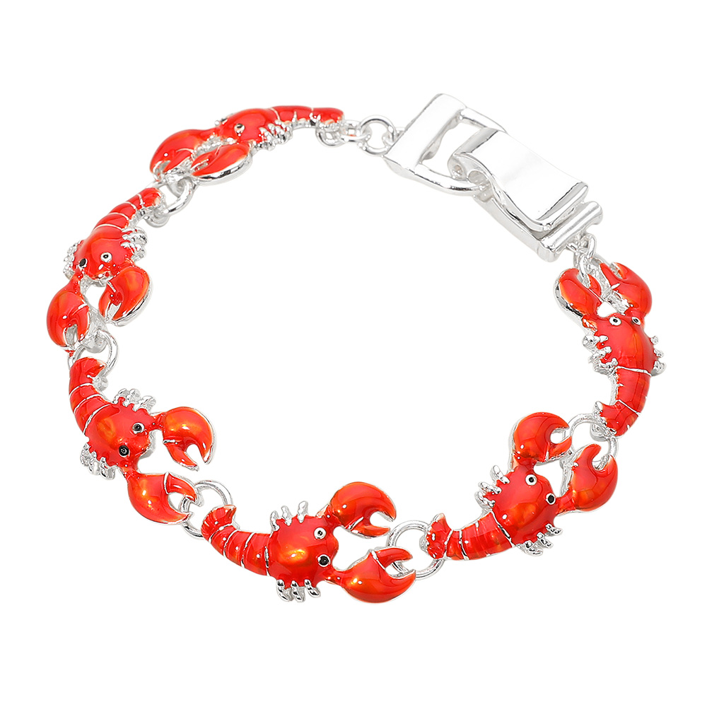 • Fun lobster charm bracelet designed with detailed linked accents for a bold, whimsical statement. Perfect for beach shops, summer styling, resort collections, and novelty jewelry assortments, this bracelet adds personality, movement, and eye-catching appeal to everyday and seasonal looks.