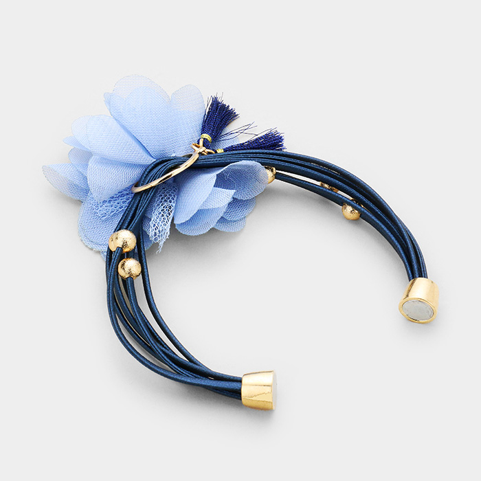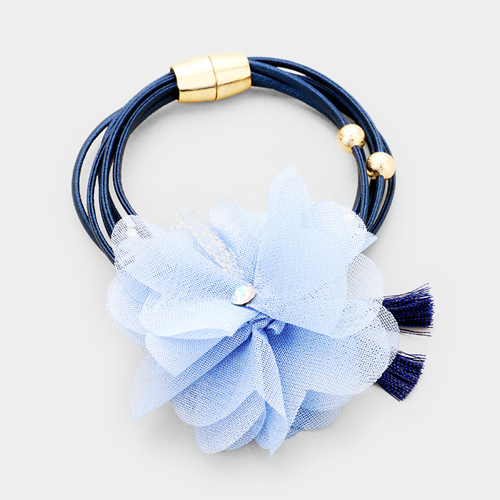 Mesh Fabric Flower Double Tassel Magnetic Bracelet