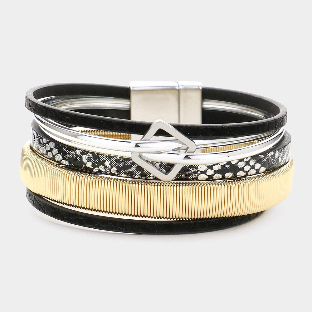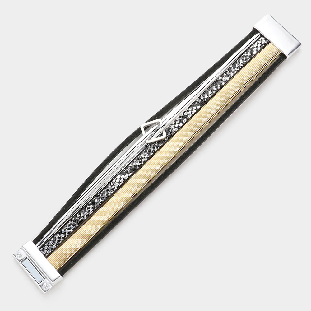Metal Square Pointed Faux Leather Snake Chain Magnetic Bracelet
