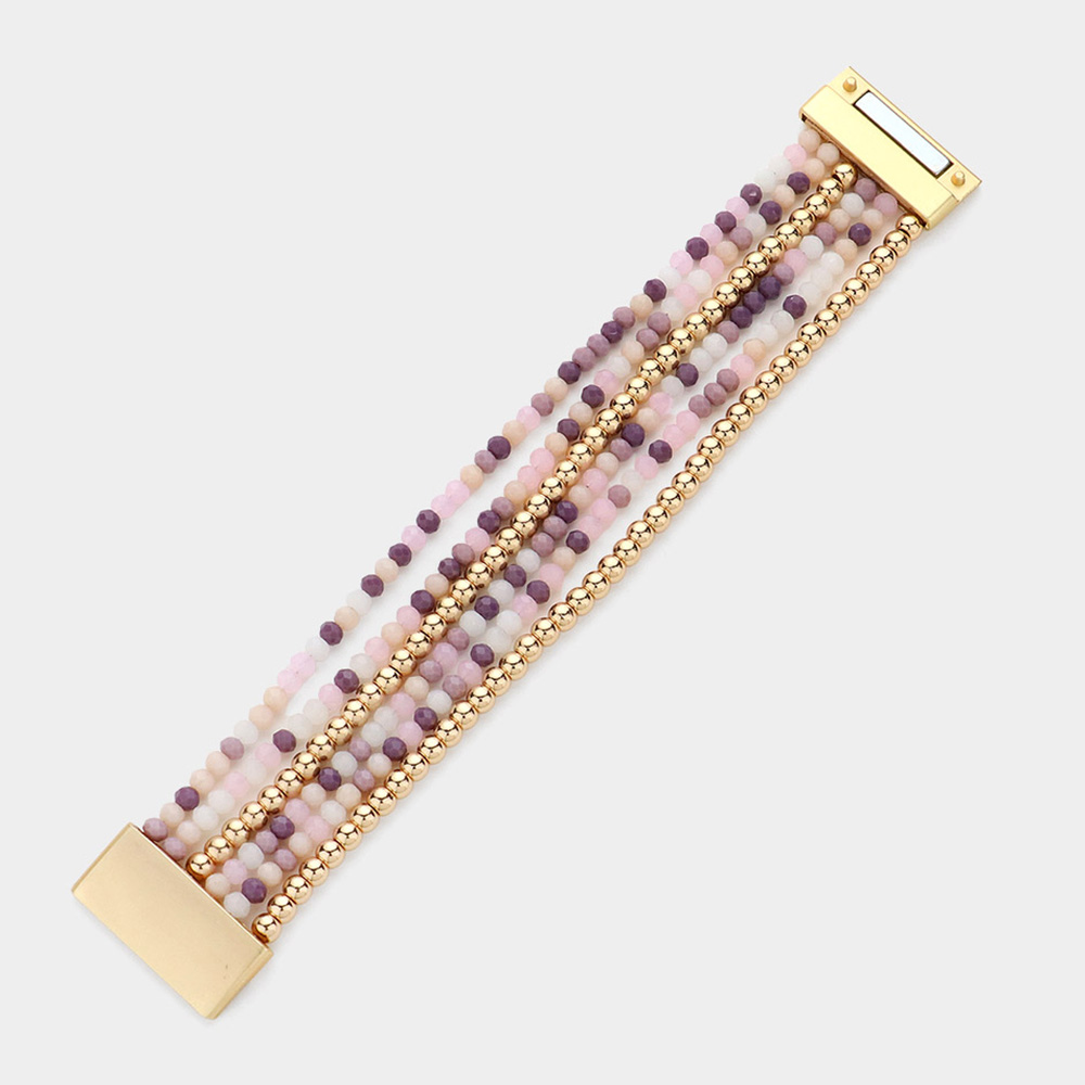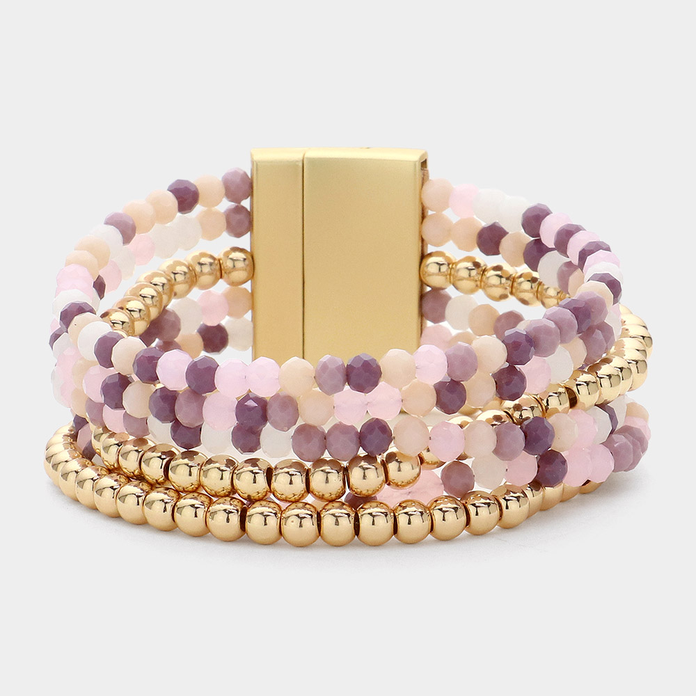 Lucite Accented Faceted Beaded Stretch Bracelet