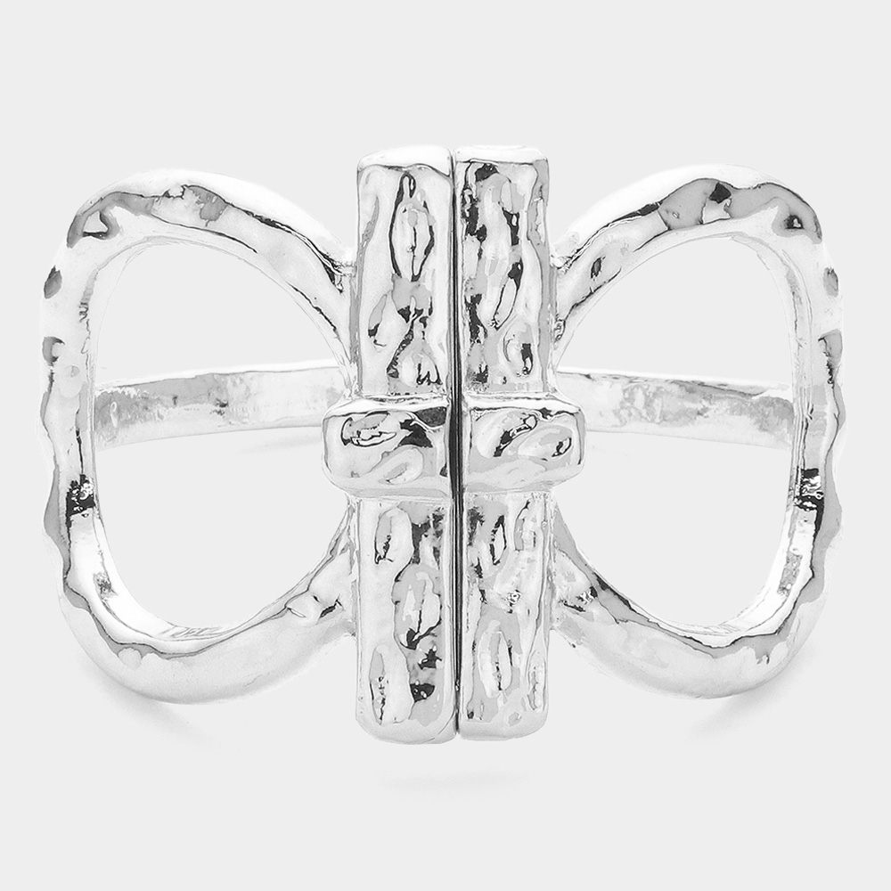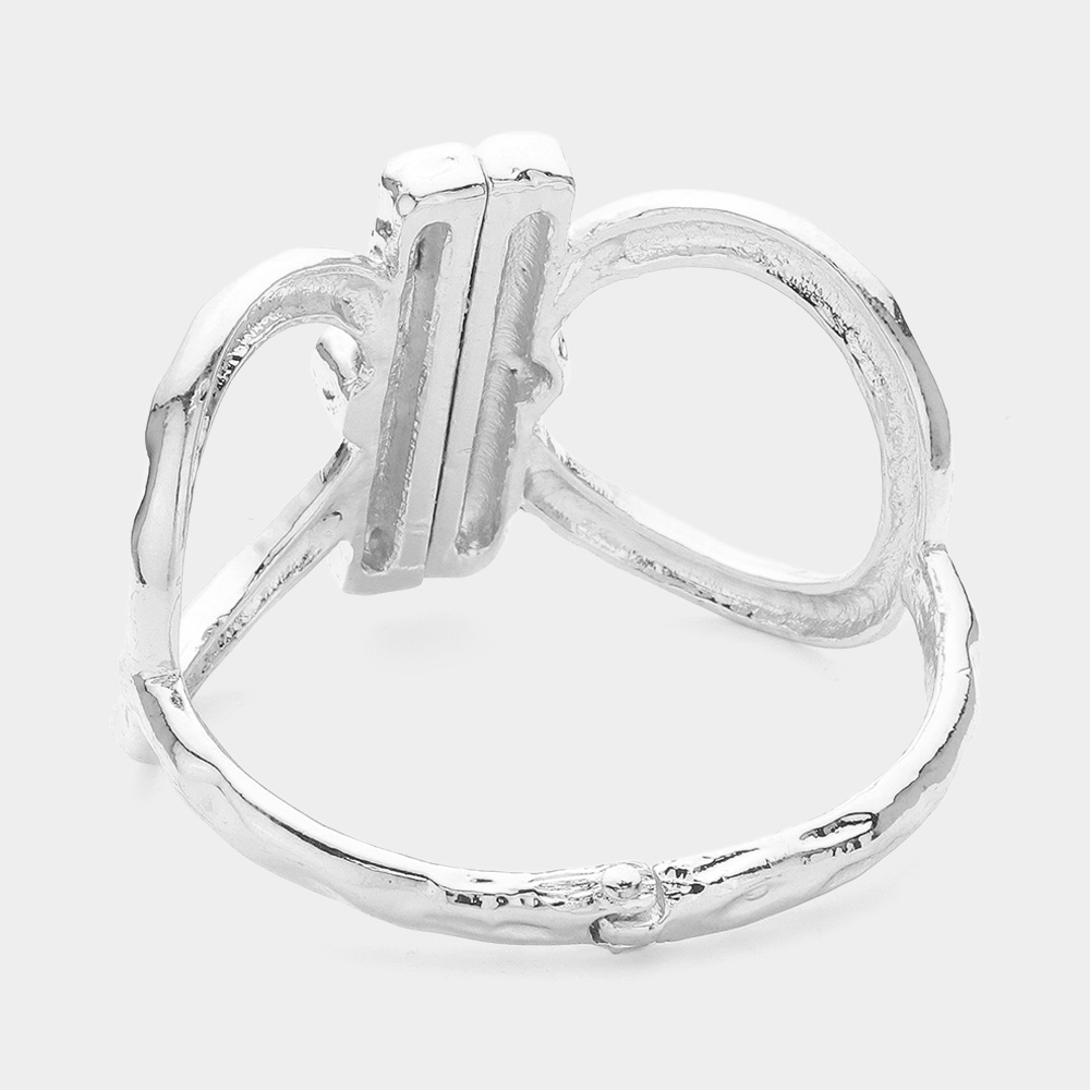 Oversized Abstract Hamered Metal Hinged Magnetic Bangle Bracelet
