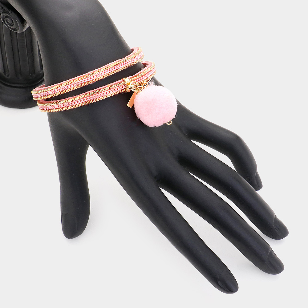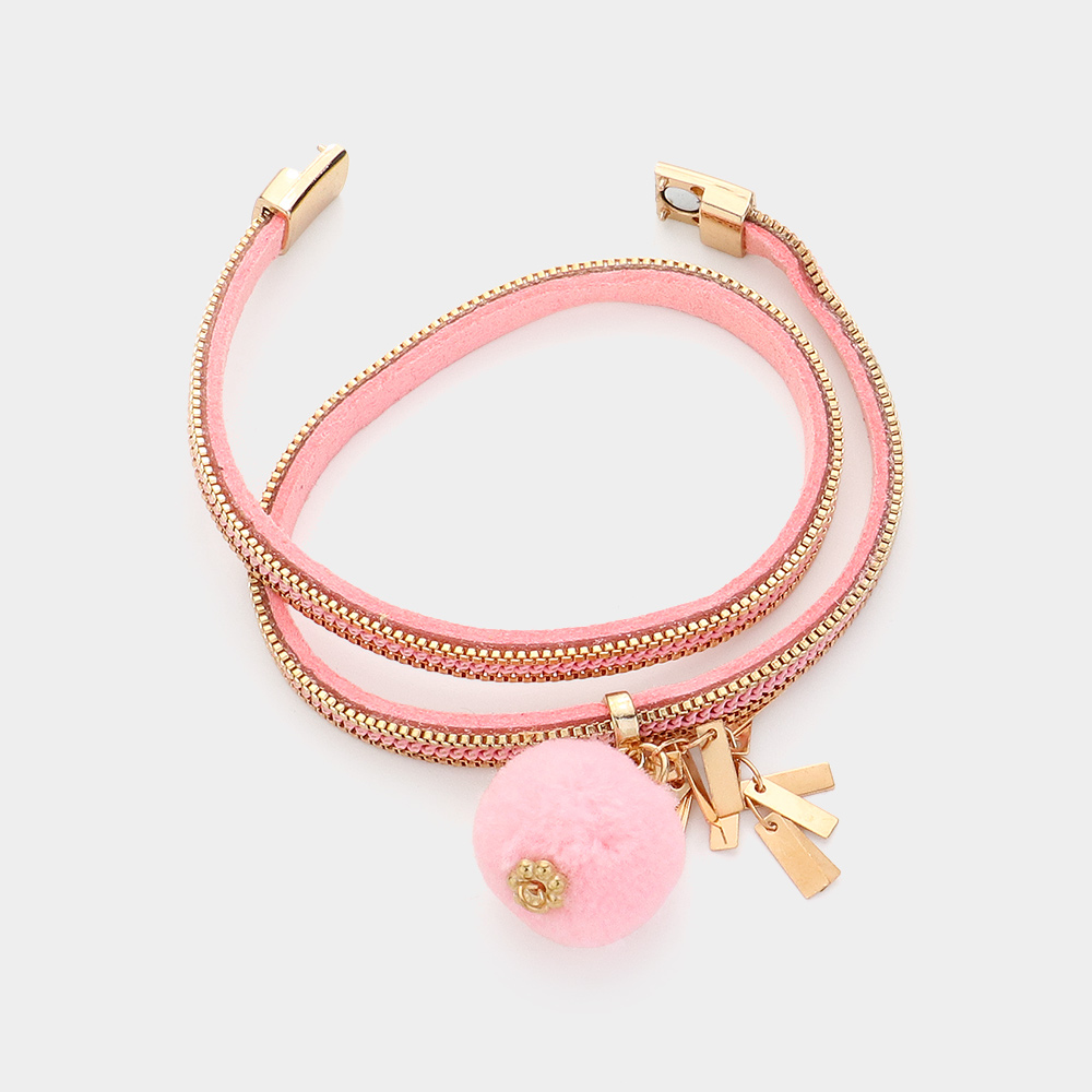 Pom Pom Charm Faux Suede Wrap Magnetic Bracelet