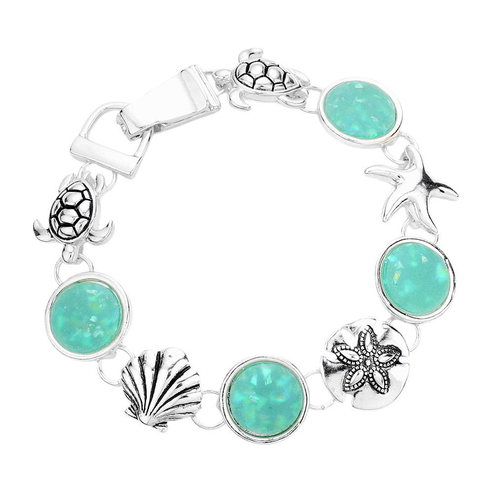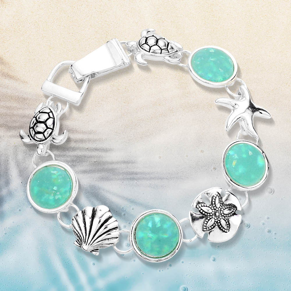 Sea Glass Embossed Metal Sea Life Magnetic Link Bracelet