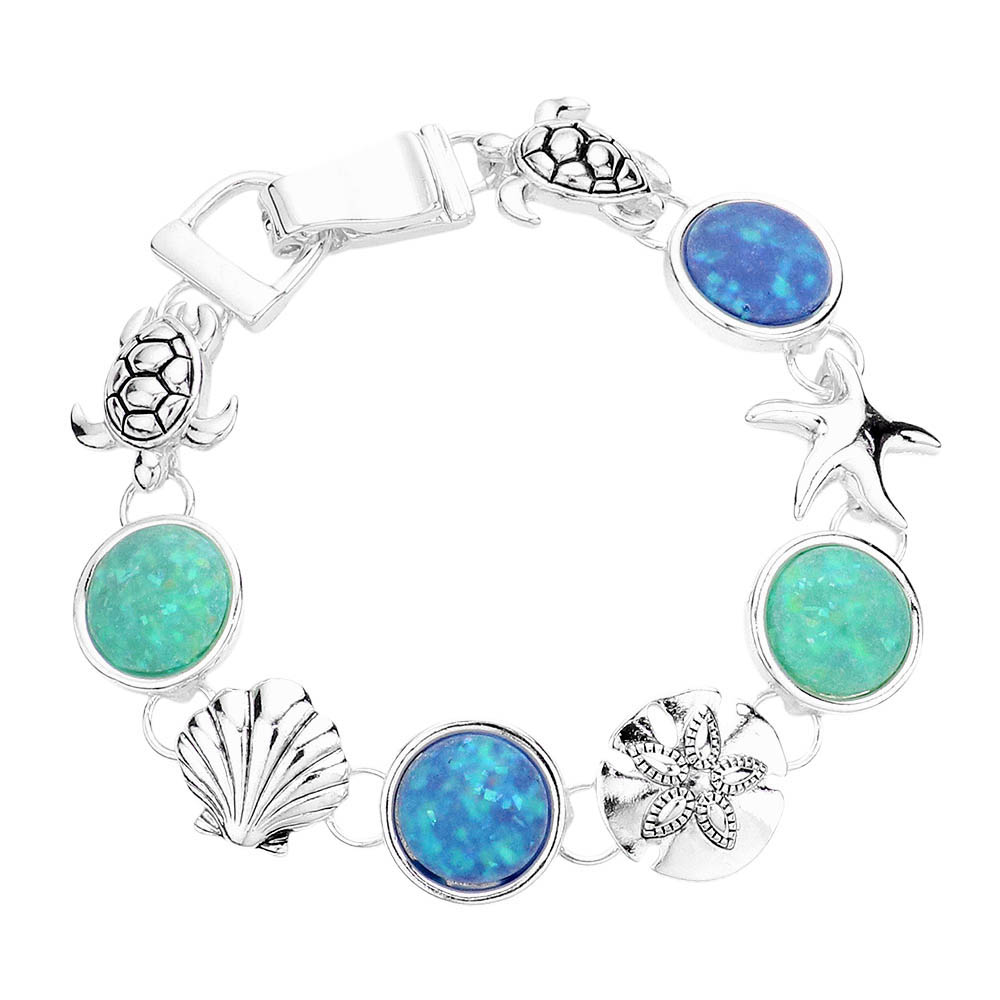 Sea Glass Embossed Metal Sea Life Magnetic Link Bracelet