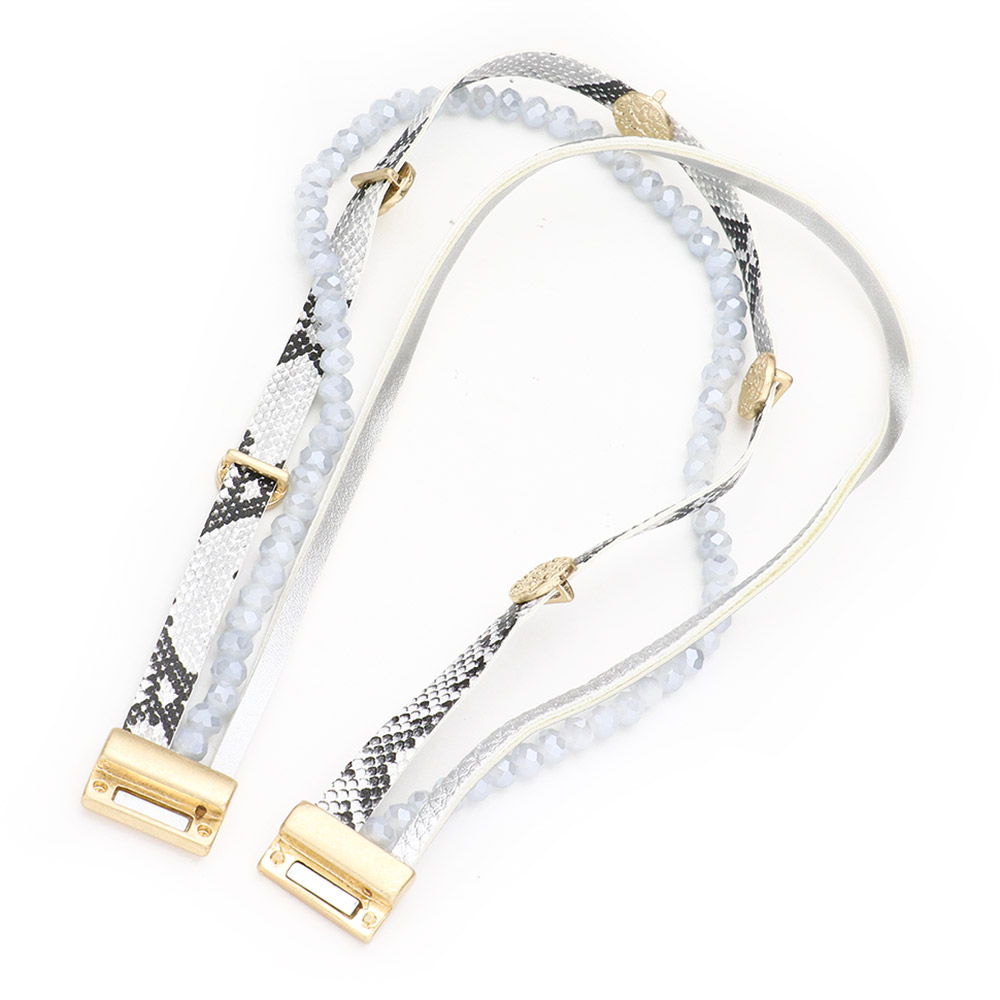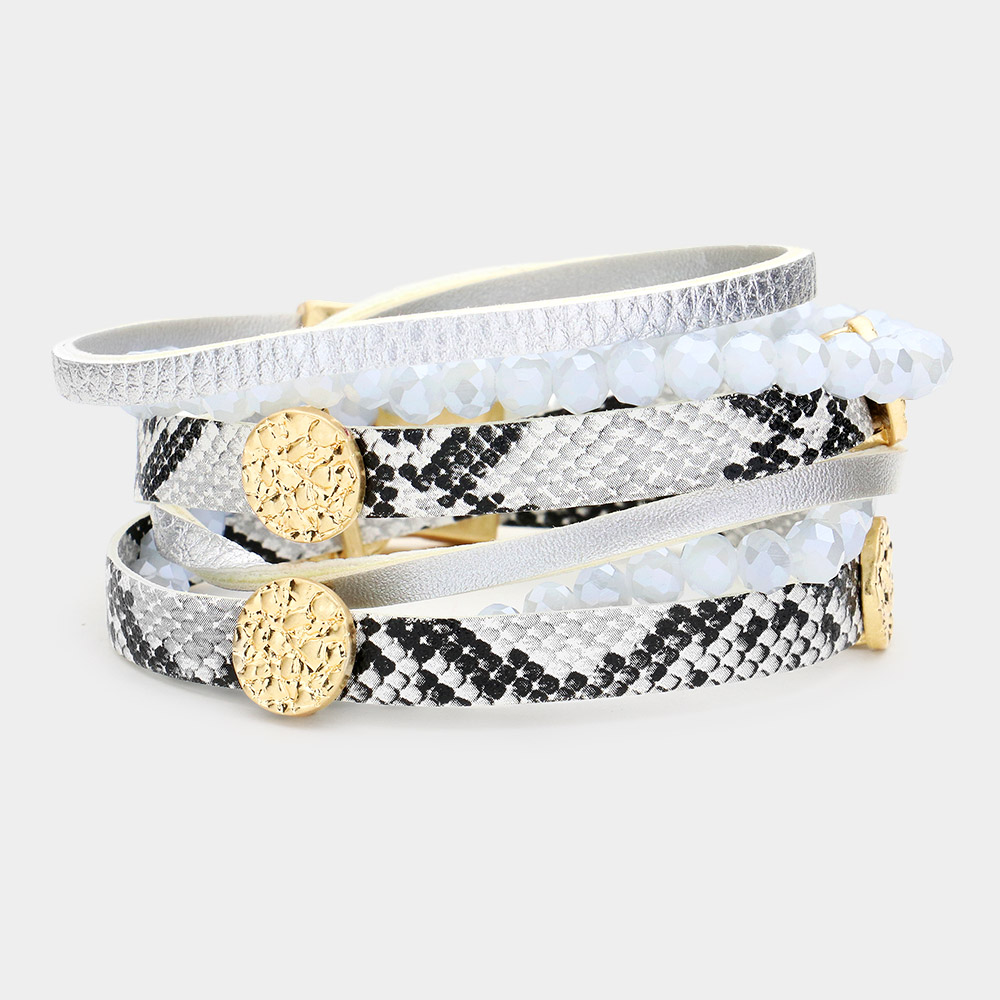 Snake Skin Faux Leather Faceted Beaded Magnetic Bracelet