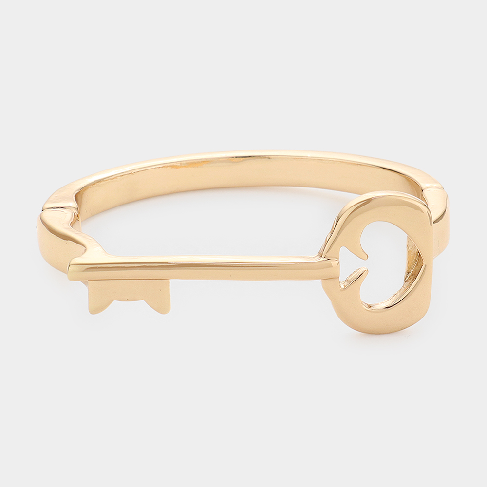 18K Gold Dipped Stone Paved Heart Key Pendant Necklace