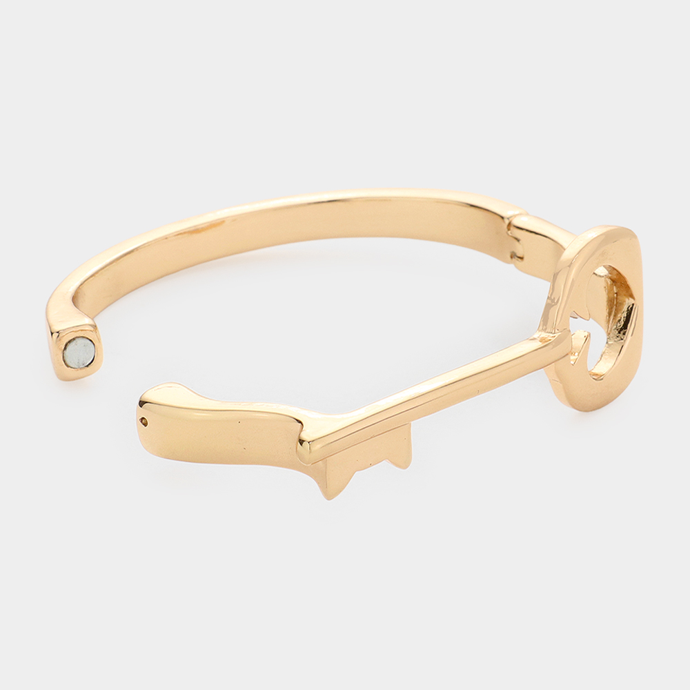 14K Gold Plated CZ Stone Paved Lock Pointed Chain Magnetic Bracelet