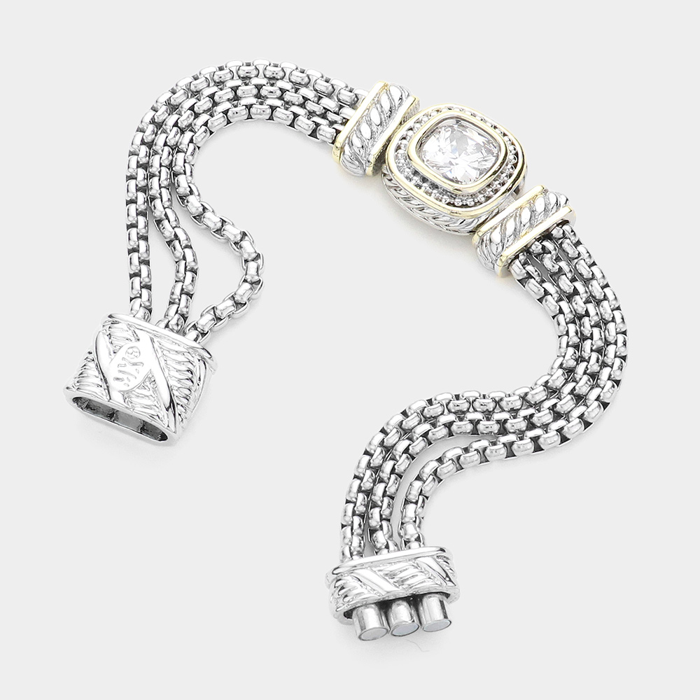 3PCS - Crystal Rhinestone Pave Plate Metal Necklace Jewelry Set