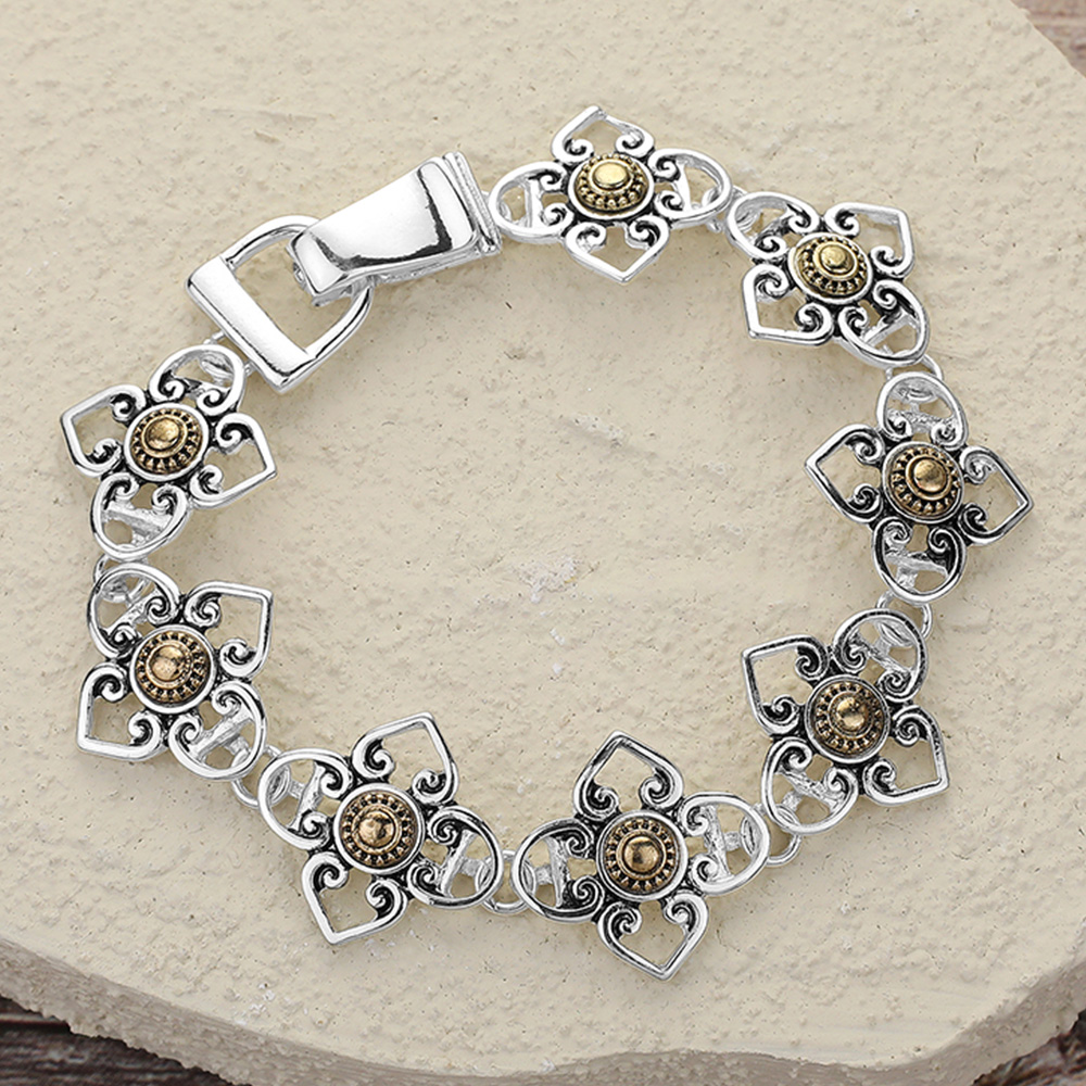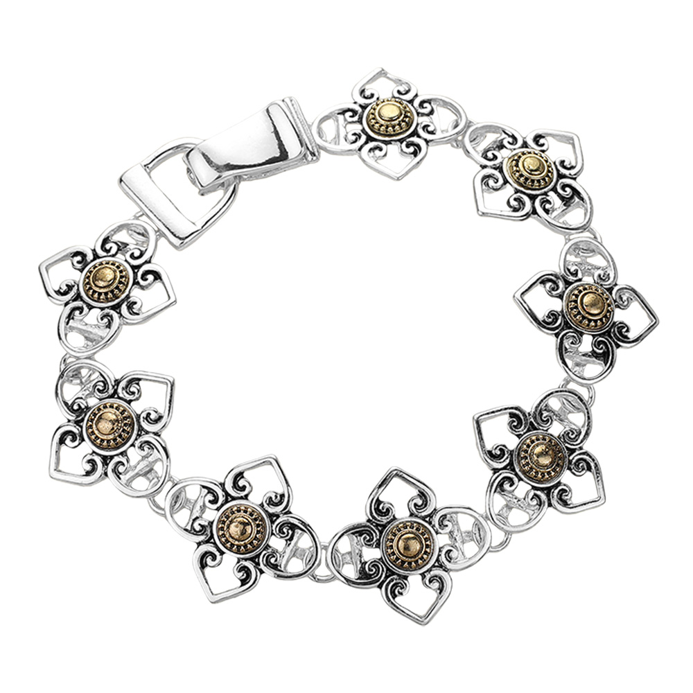 14K Gold Plated CZ Stone Paved Link Pointed Two Tone Bracelet