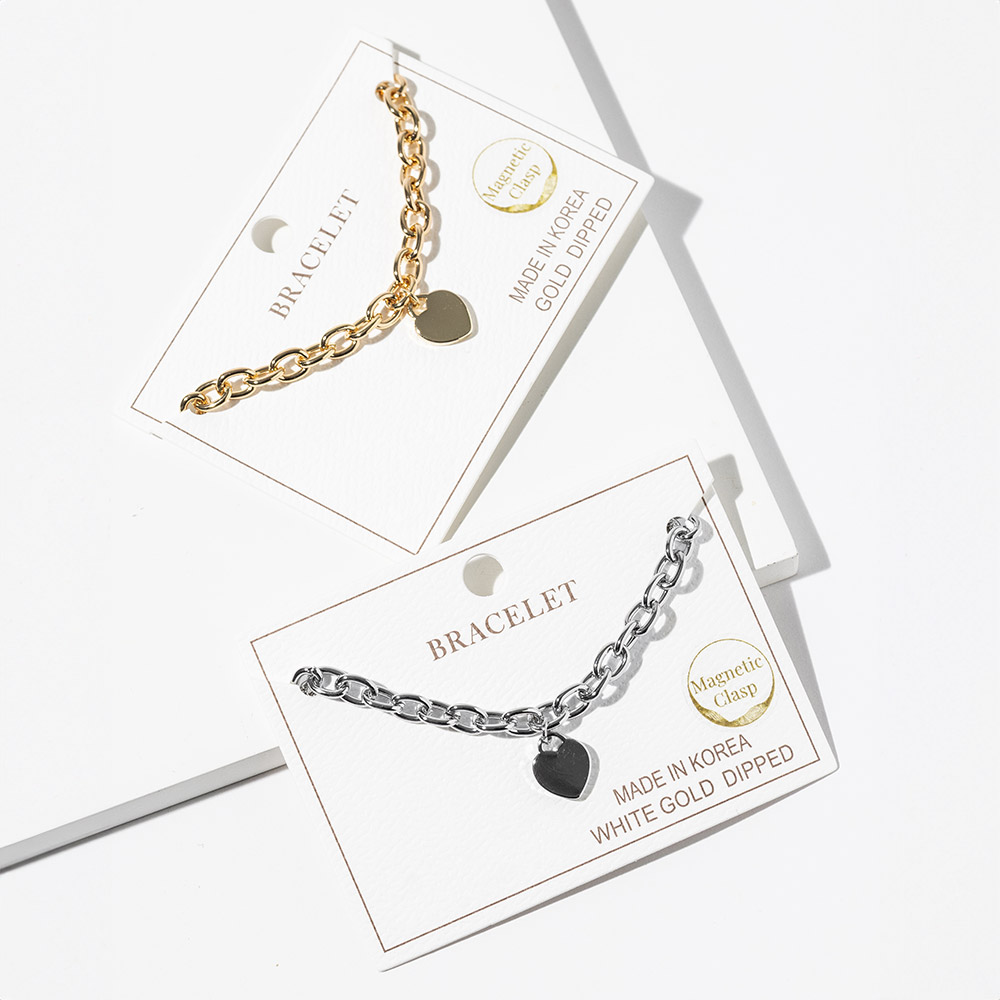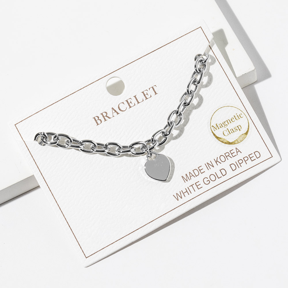 Details • Size : 0.25" H, 7" + 1" L • Charm Size : 0.4" X 0.5" • Magnetic Clasp Closure • Elevate your everyday look with this heart charm chain bracelet designed for effortless style and easy wear. Its secure magnetic clasp offers convenience while the delicate chain and polished heart pendant create a timeless accessory that complements casual and dressy outfits, making it a perfect gift or staple piece for any collection. • Gold Dipped • Lead and Nickel Compliant • Made In Korea