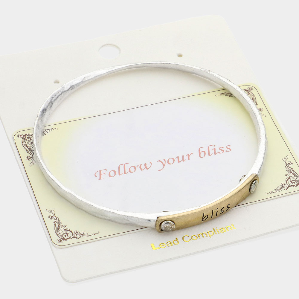 Bliss Message Two Tone Metal Bangle Bracelet