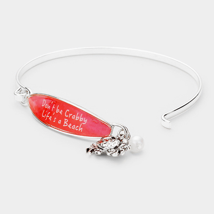 Don't be Crabby Life's a Beach Crab Charm Surfboard Hook Bracelet