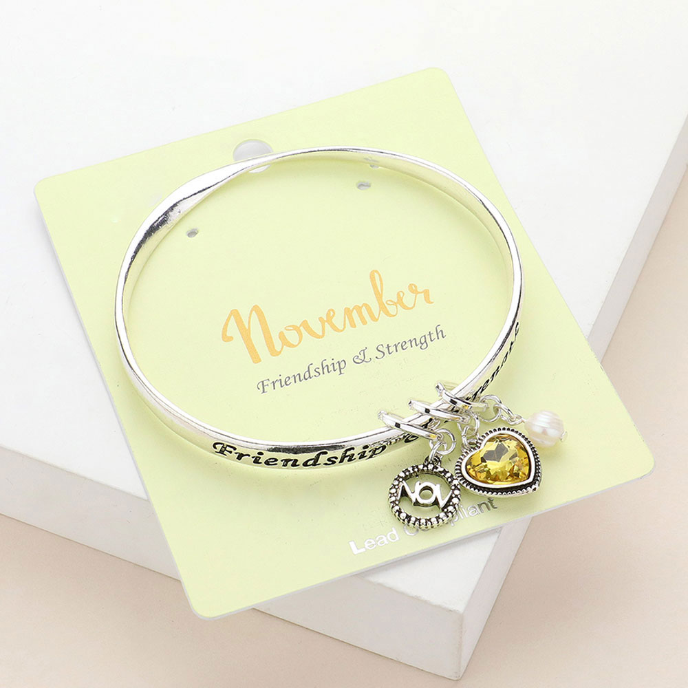 Friendship Strength November Heart Birthday Stone Charm Bracelet