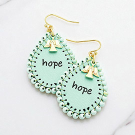 "Hope" Beads Trimmed Leather Teardrop Dangle Earrings